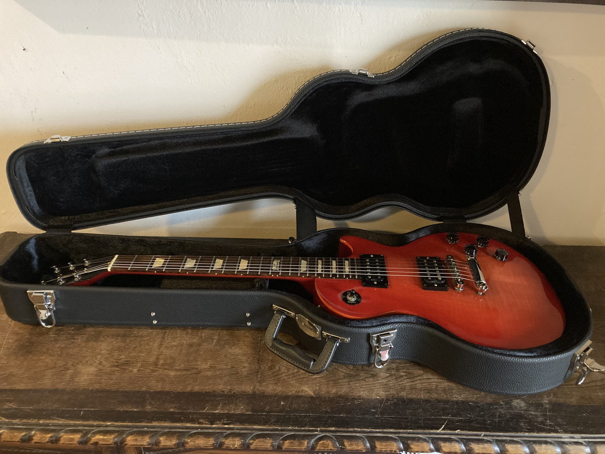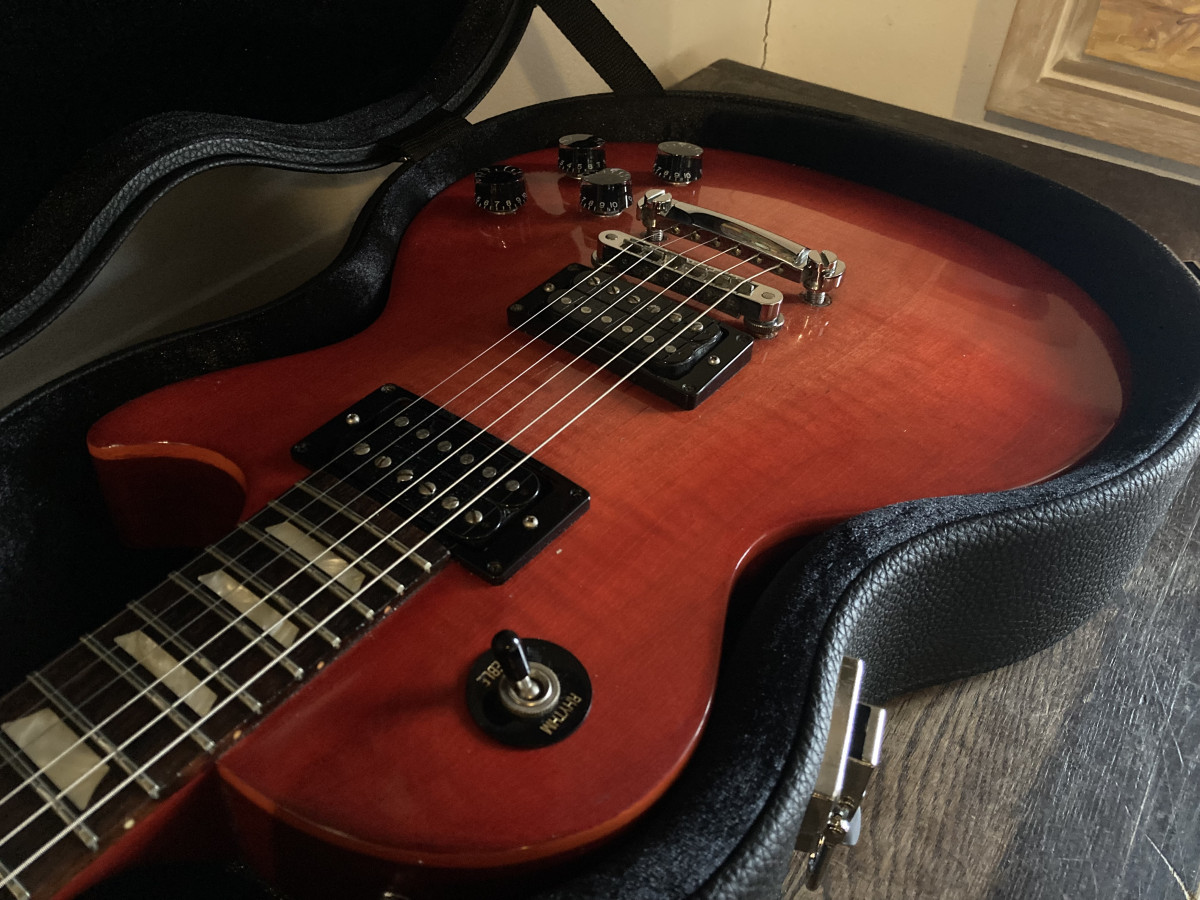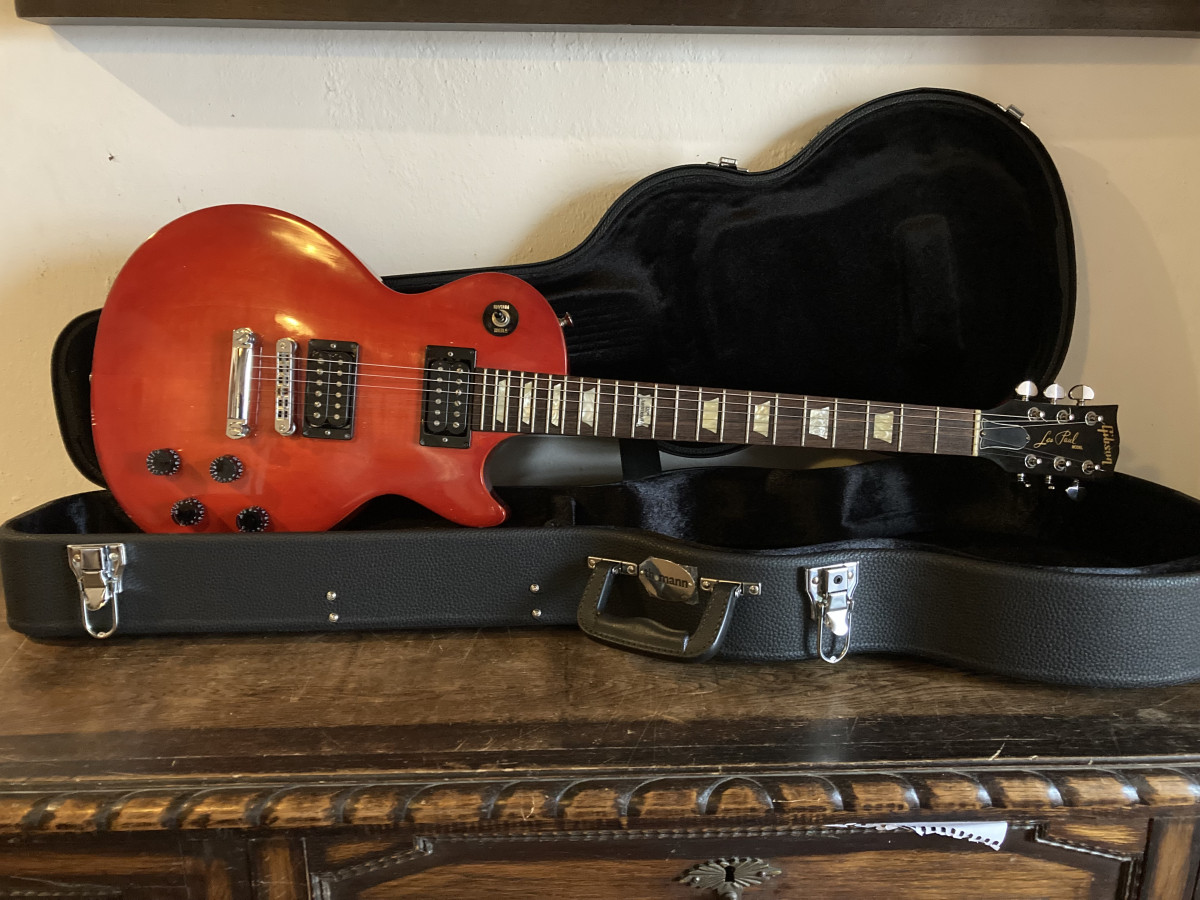 Como veis de “futura” ya queda poco. Pesa 4 kilos de caoba con tapa de arce A, diapasón de rosewood, guitarra con algunos ding y roces típicos del uso pero en general está en muy buen estado, trastes perfectos. La toco a diario, suena cañón y es muy cómoda, lleva perfil 60 en mástil, solo cambio porque tengo otras Gibson y alguna tiene que salir.