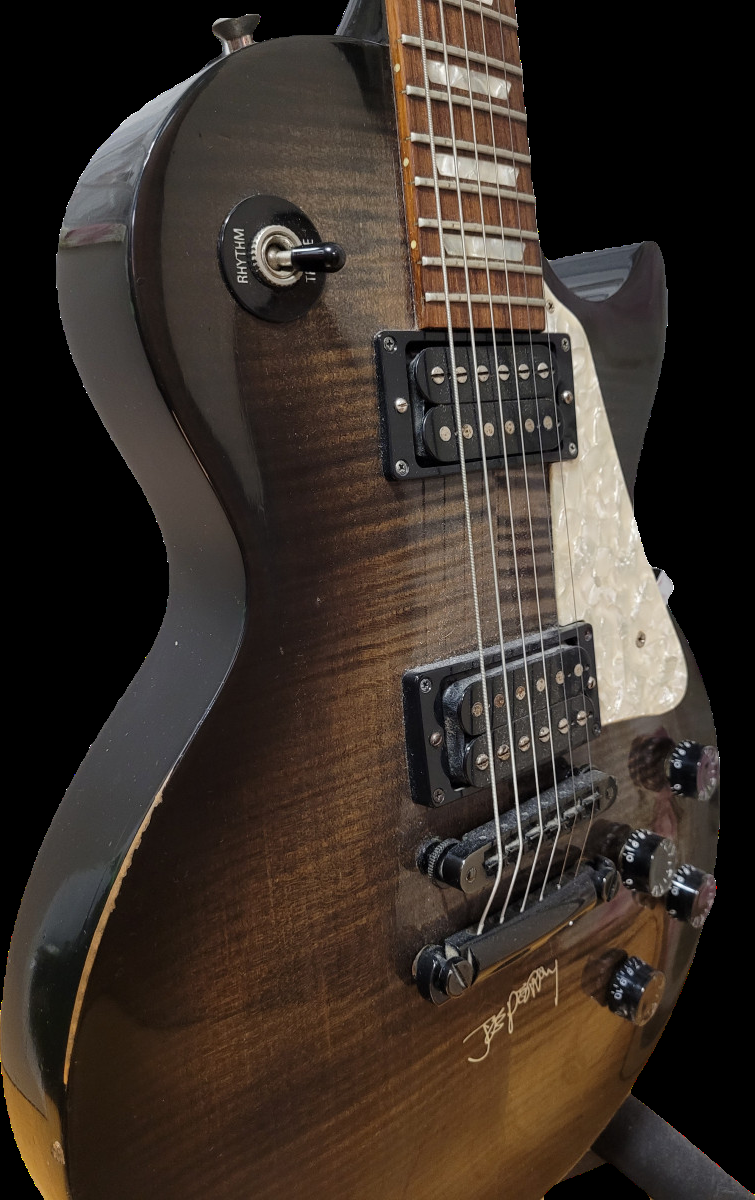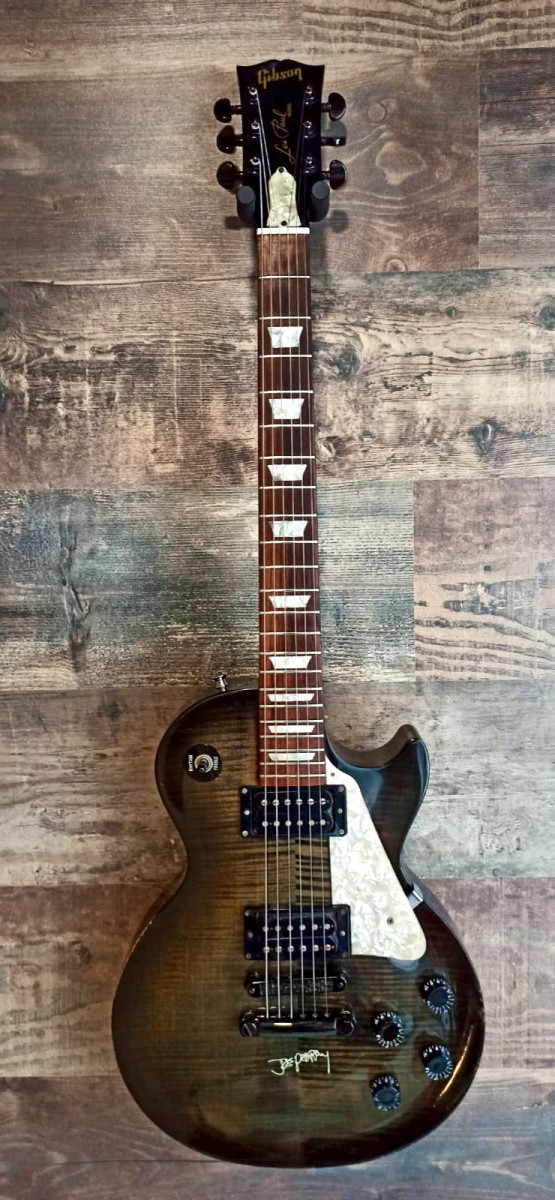 La producción de la JOE PERRY SIGNATURE LES PAUL comenzó en 1997 y finalizó en 1999. Llevaba la firma de Joe Perry en el cuerpo, detrás del puente. Estaba disponible únicamente en acabado blackburst con herrajes cromados negros. La pastilla del puente se bobinaba a medida según las especificaciones de Perry y la guitarra contaba con un circuito activo de realce de medios, controlado por un potenciómetro push/pull, y un control de tono maestro. La Gibson Joe Perry Les Paul se basó en la Les Paul Standard sunburst de Perry del '59.