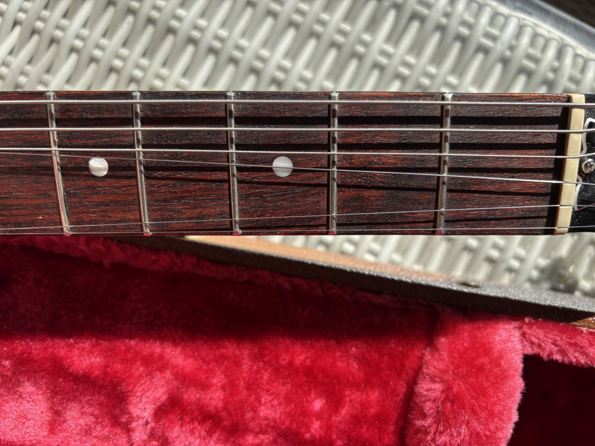 Estado estético: Esta guitarra se encuentra en muy buen estado, con ligeros muestras de uso en la parte posterior del cuerpo y en el rascador. Tiene muy poco uso y aun atrae el polvo la capa de nitrocelulosa.