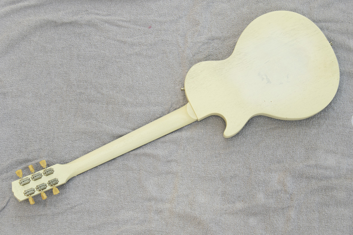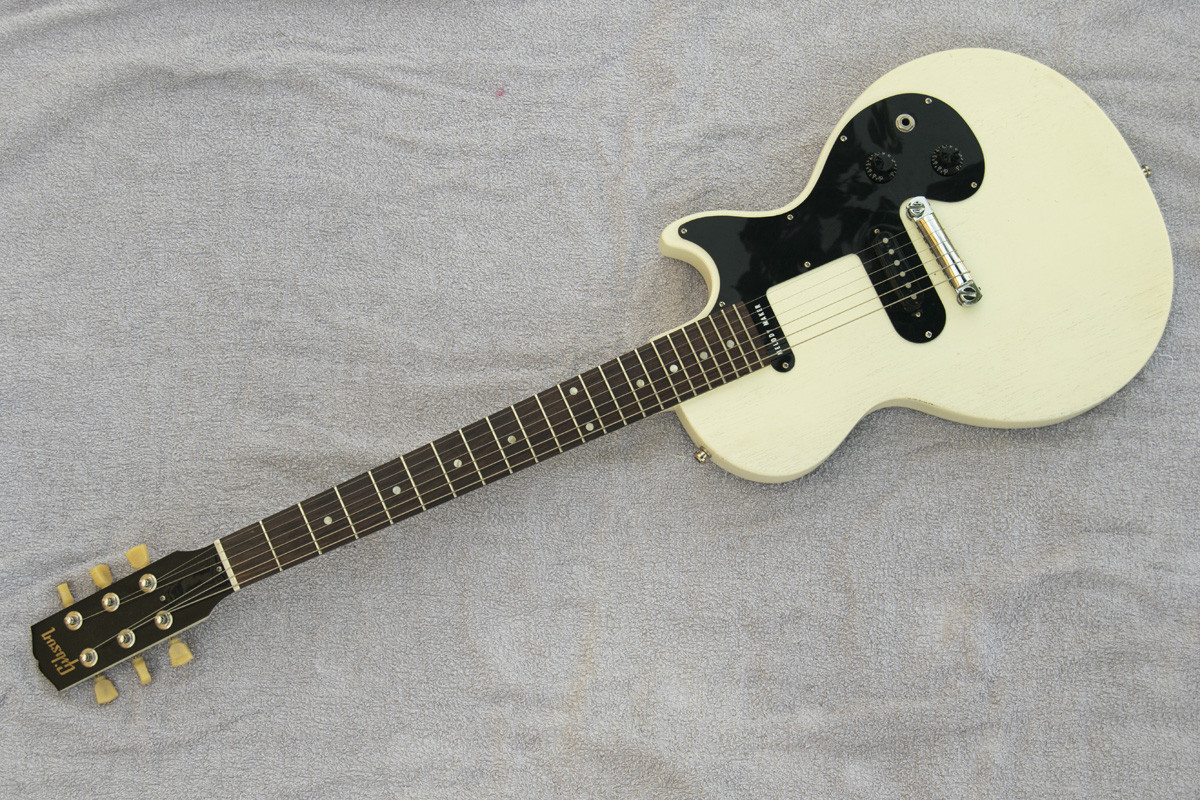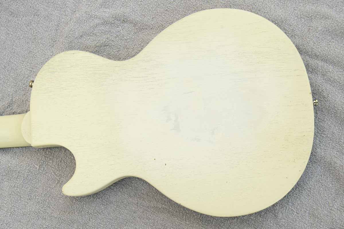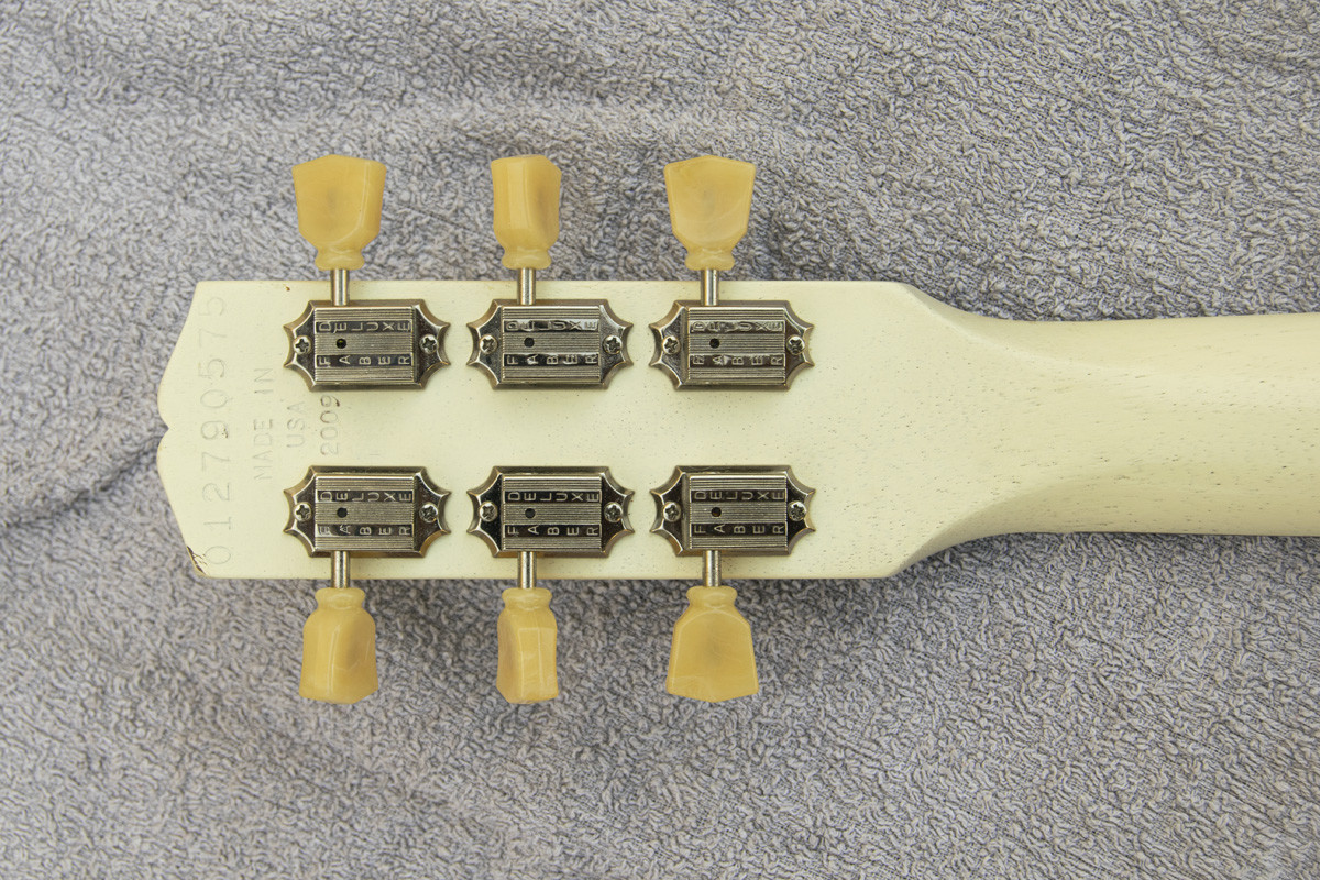 Como se ve en las fotos, el blanco ha ido amarilleando un poquito, y tiene ese relic natural que nos flipa y por el que pagamos un dineral por tenerlo artificial. Este es de horas de ensayos y conciertos. Es una guitarra del 2009 y ha sido tocada.
