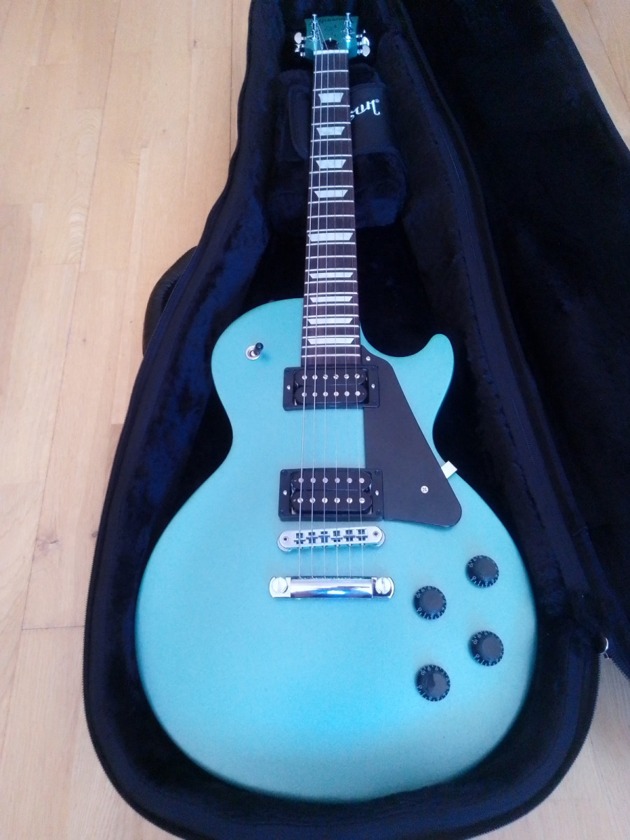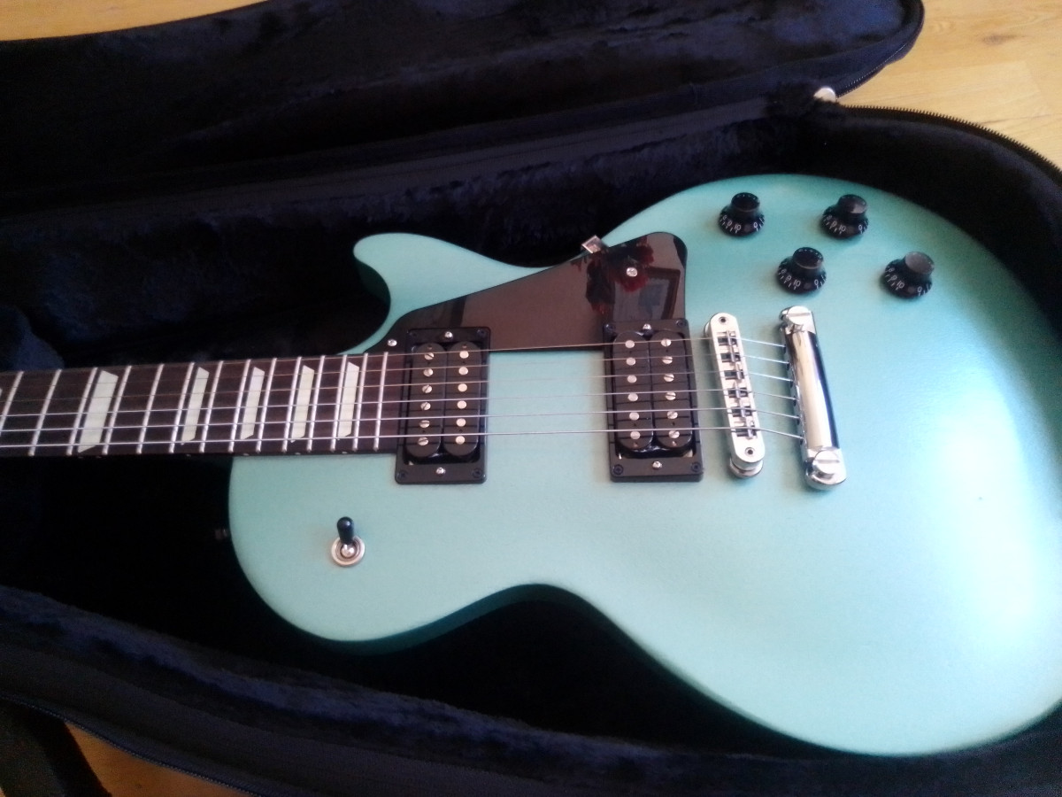 Gibson les Paul Modern Lite en estado impecable. Muy pocas horas de uso, trastes al cien por cien sin marcas. Se le han puesto inlays adhesivos que se pueden quitar si se desea y lleva también clavijas de bloqueo Grover. Pastillas Gibson 490 mástil y 498 en puente.