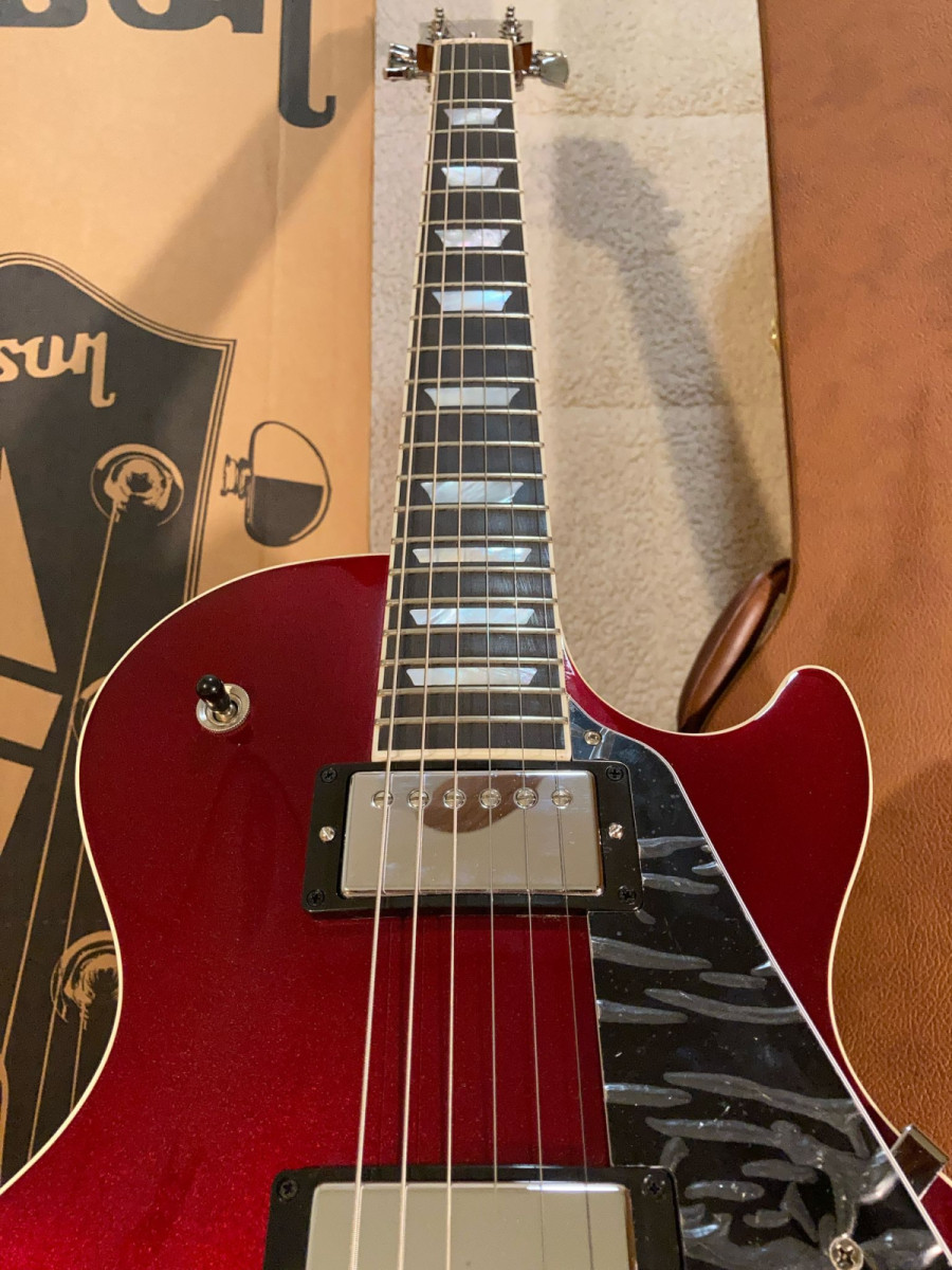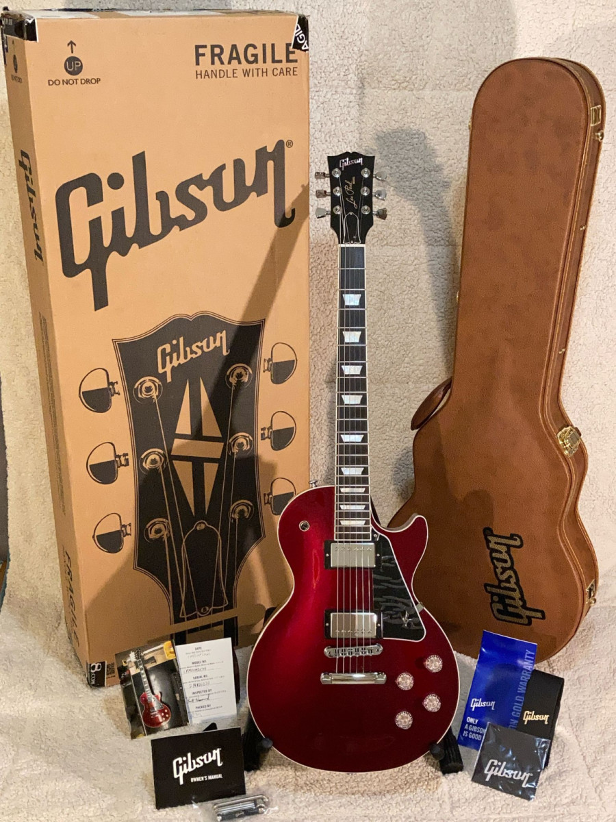 🎸 Gibson Les Paul Modern Sparkling Burgundy Top, en excelente estado, sonido premium y diseño impactante.