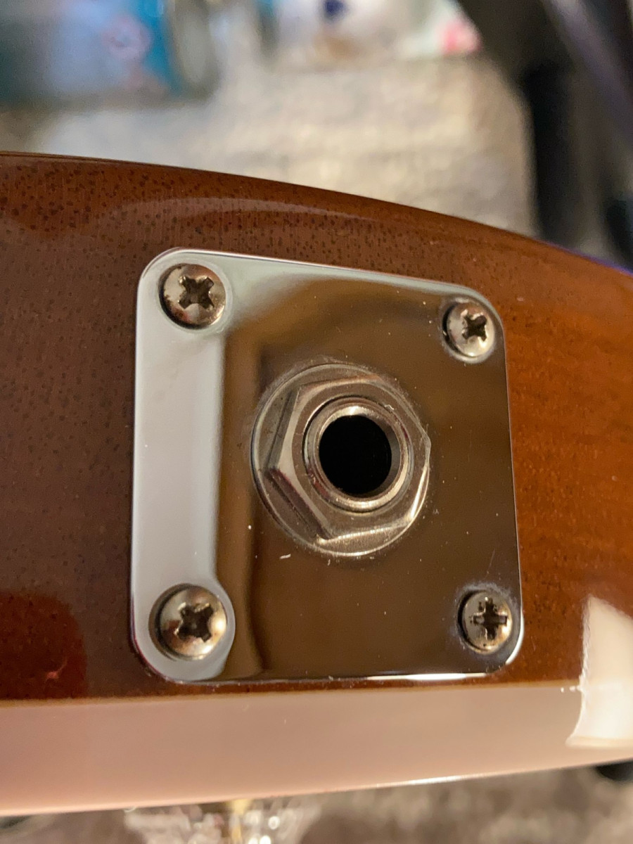 ✔️ Cuerpo de caoba con tapa de arce, acabado en Sparkling Burgundy.