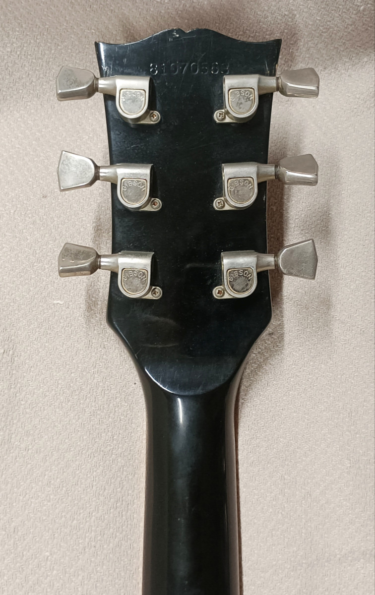 El Modelo PRO se fabricó en 1976-82, es una Standard pero con diapasón de Ébano como las Custom, y clavijeros Shaller-Gibson de calidad. Además lleva las famosas pastillas P90, muy cañeras, que recogen todo el sustain y resonancia de la guitarra, con la claridad del bobinado simple. Les Paul fabricada en Nashville hace 45 años en perfecto estado sin cambios de piezas ni golpes. Tiene un mástil medio-estrecho tipo 70s, muy rápido con acción baja sobre trastes planos y anchos, típicos de esta época y difíciles de encontrar todavia en LPs antiguas. Pesa exactamente 4,6 kg. Estuche Gibson incluido. Esta Guitarra fue comprada en NY en 2003. Prefiero que la pruebes a fondo en Castelldefels, pero se puede enviar también, perfectamente empaquetada.