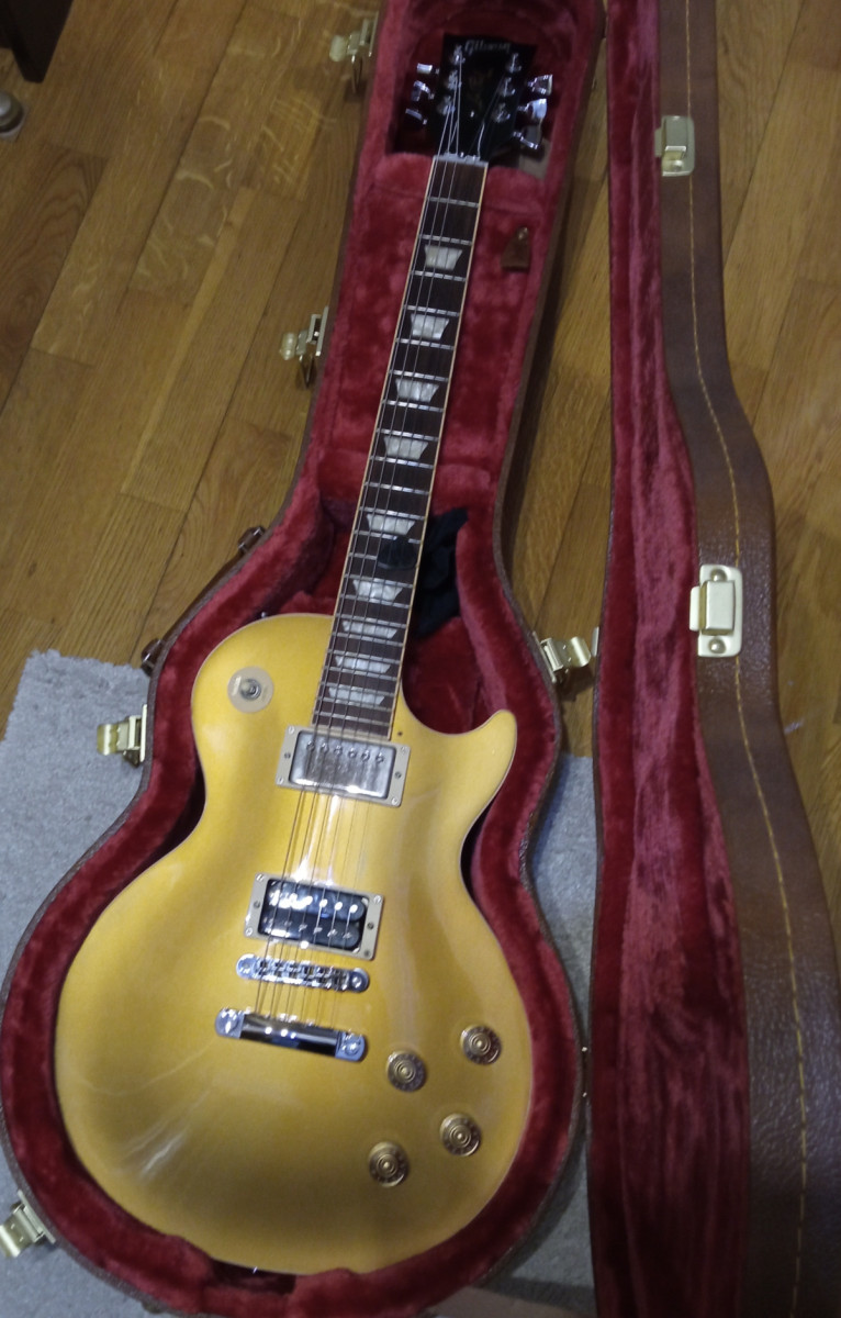 Estuche de una Gibson de 2018, más guapo que el de interior blanco que traía. Todo lo demás original, con su golpeador y papeles de fábrica.