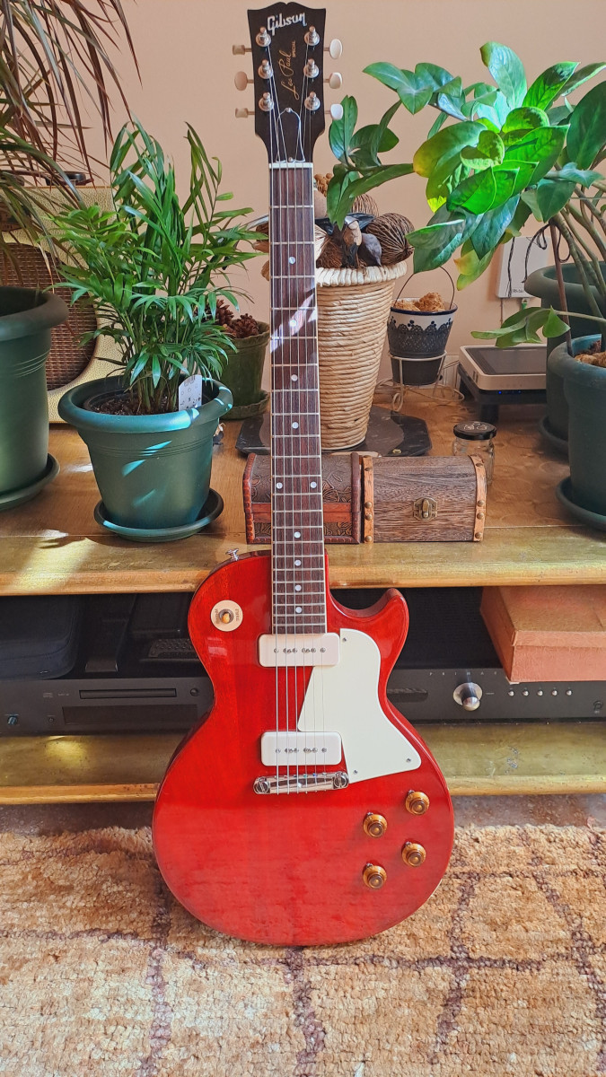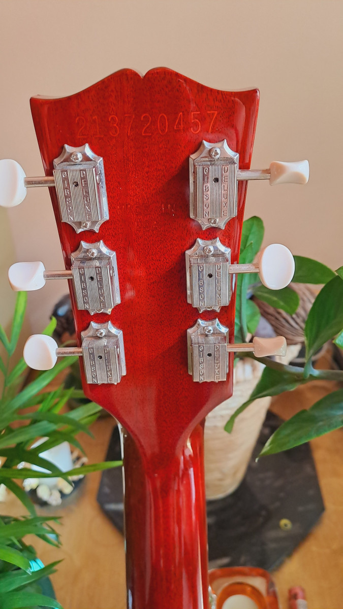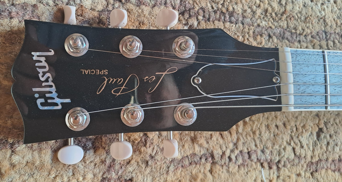 Esta Les Paul Special es bonita, ligera, con binding en el mástil, diapasón oscurito aunque en las fotos no se aprecie bien, logo Gibson "perlado" y afinadores vintage. Fabricada en Julio de 2022, está prácticamente nueva, sin marcas de uso.