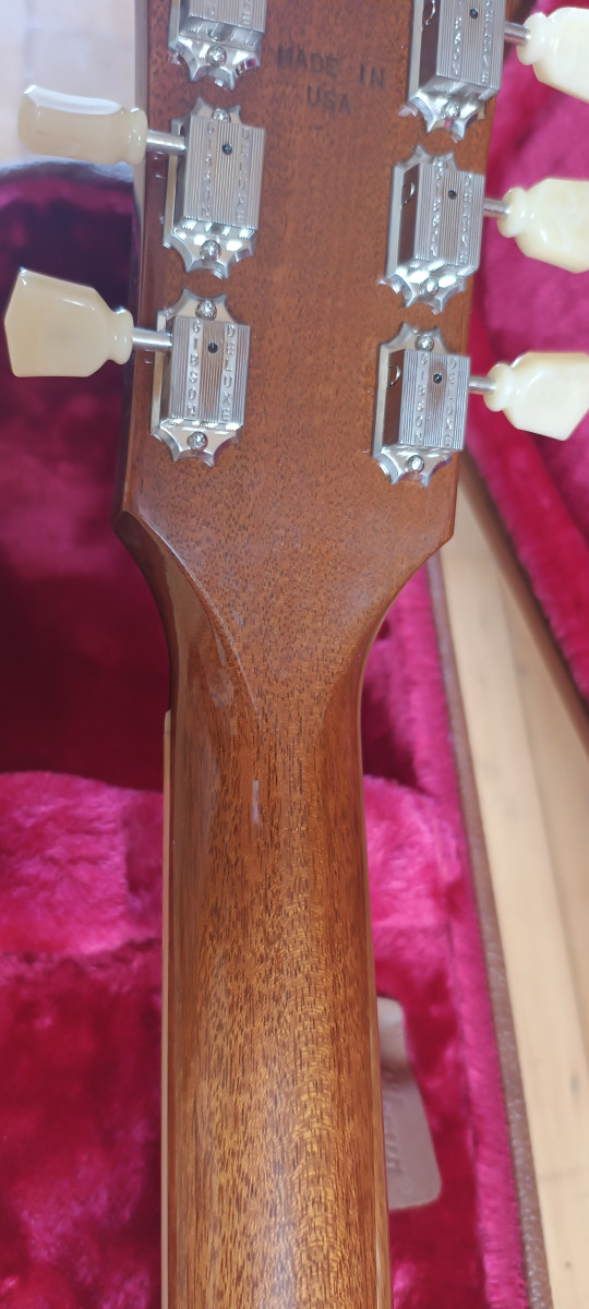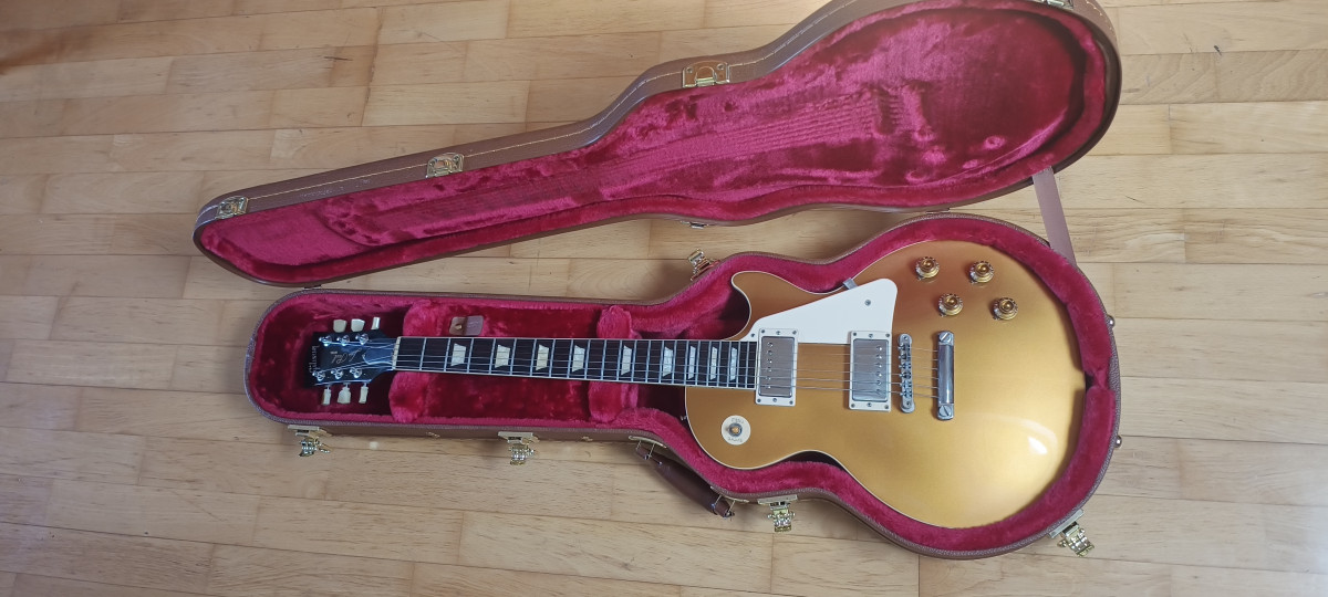 Se trata de una Les Paul standard 50's estrenada por mi, del año 21 (o 22 no recuerdo bien). Está de serie con todas sus chuches. Trastes con mucha vida por delante. Está muy bien cuidad, nada que reseñar.