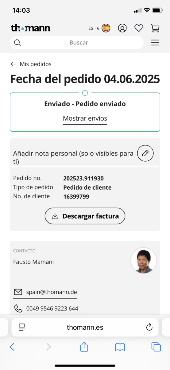 proporciona factura de Thomann para la garantía.