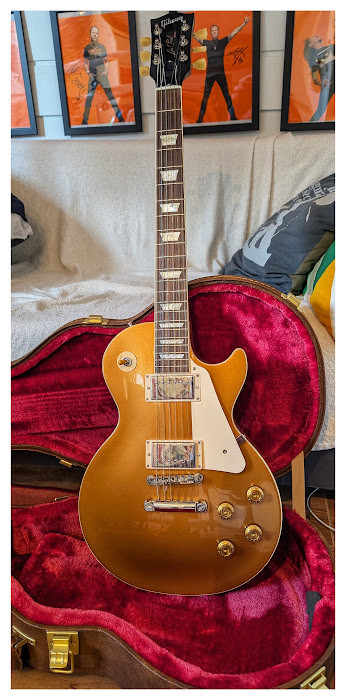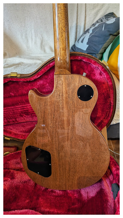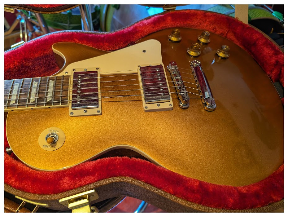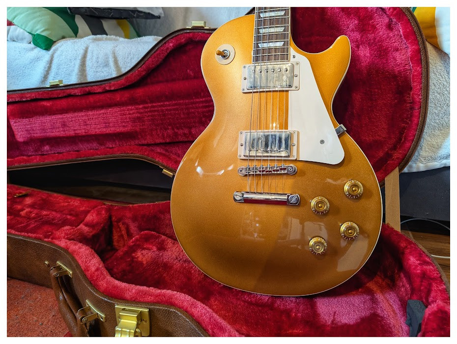 Es una Standard de finales del 2024 comprada nueva en Nueva York ahora en abril (factura de compra del 24.04.). La guitarra está realmente nueva. El mástil es muy cómodo (a diferencia de las R Goldtop que son un bate de béisbol) y las humbuckers son cañeritas.