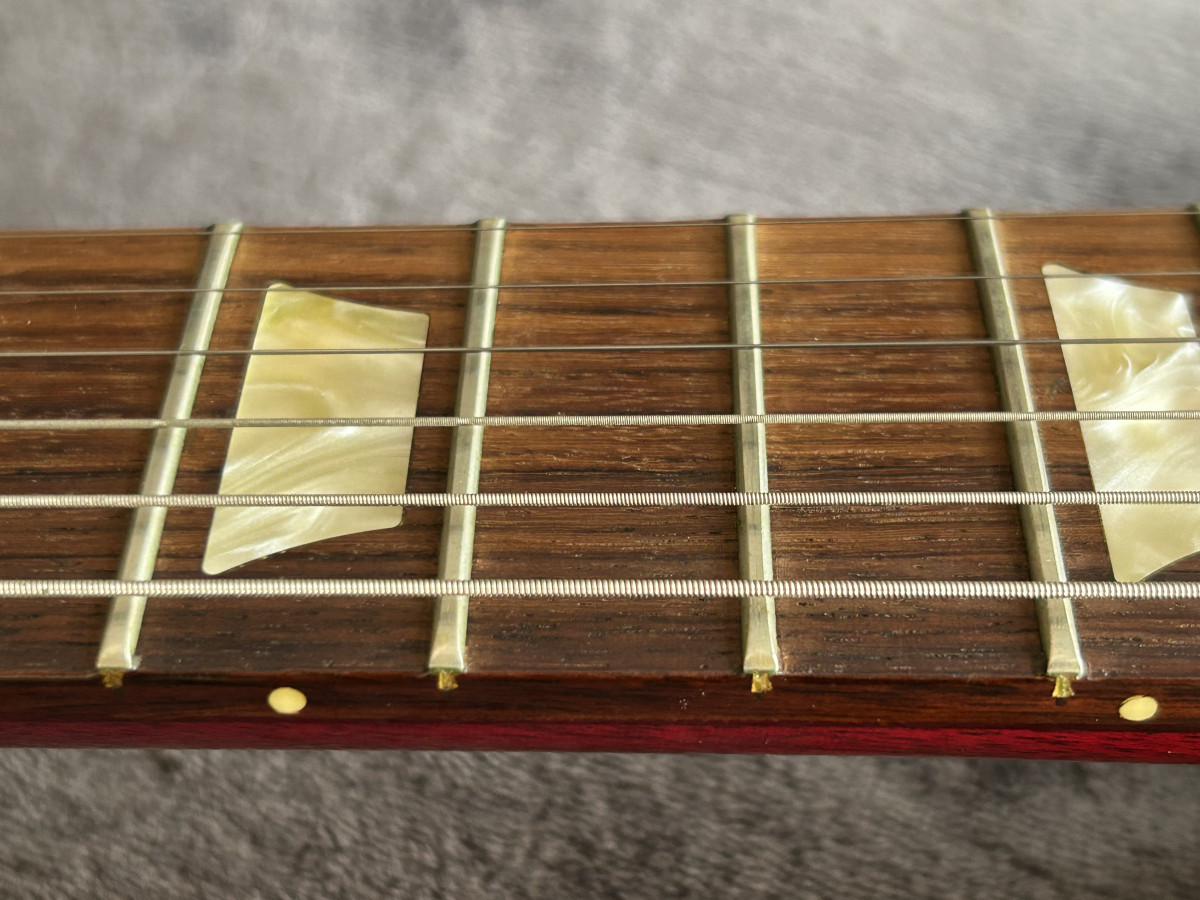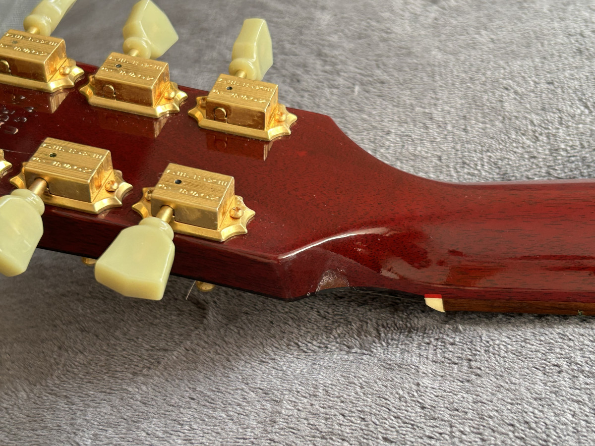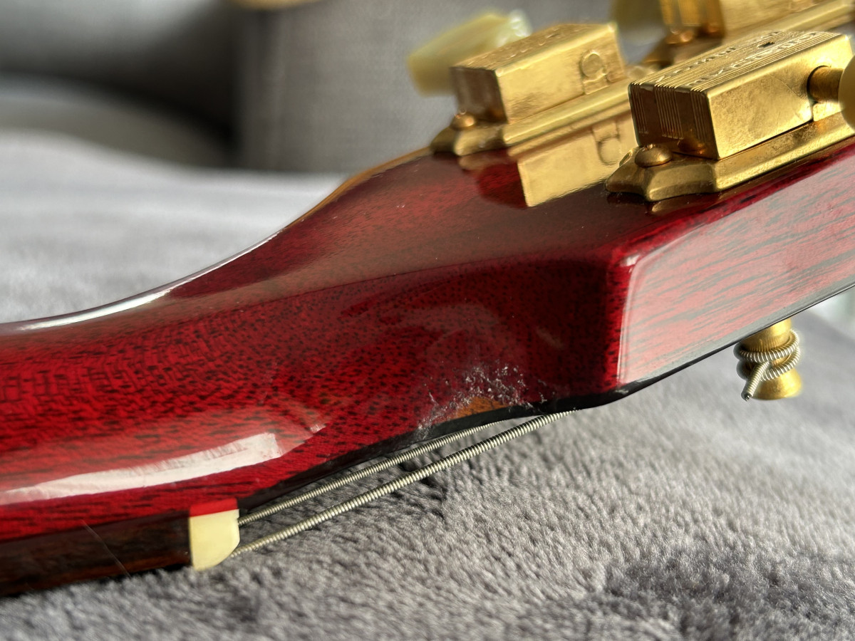 Tiene dos marcas en la parte posterior-superior del mástil de apoyarla en un soporte. Aparte de eso, muy buen estado, sin golpes ni roturas.