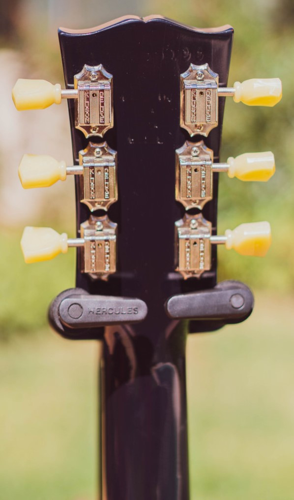 Las pastillas son las originales, unas tributo a las les paul del 59, con ese toque PAF, bastante únicas la verdad, mucho brillo y cuerpo. El mástil más bien gordito, no bate de beisbol, pero gordito, te llena bien la mano. Y el diapasón un rosewood oscurete para acompañar bien el contraste, nada clarito.