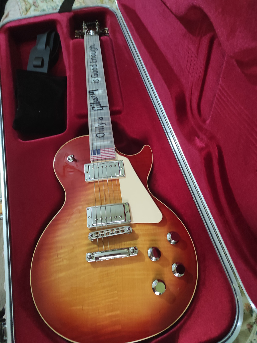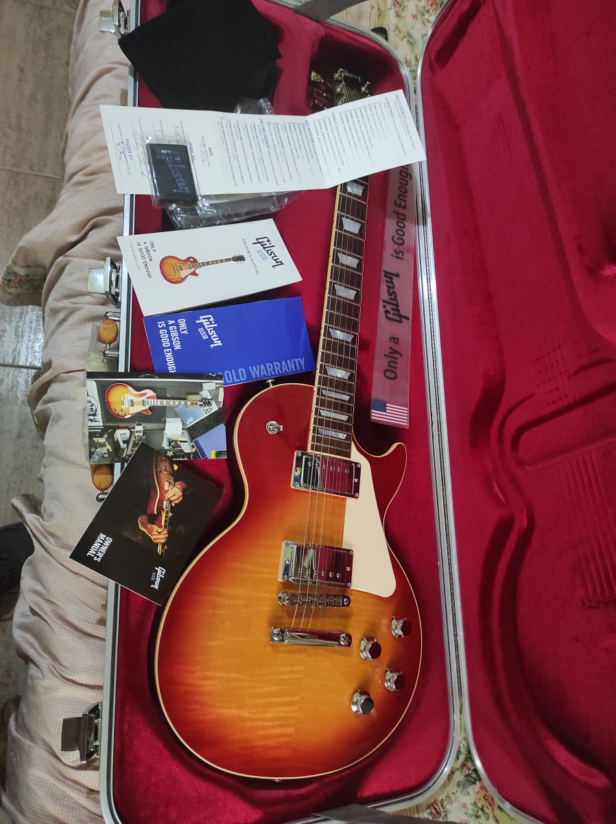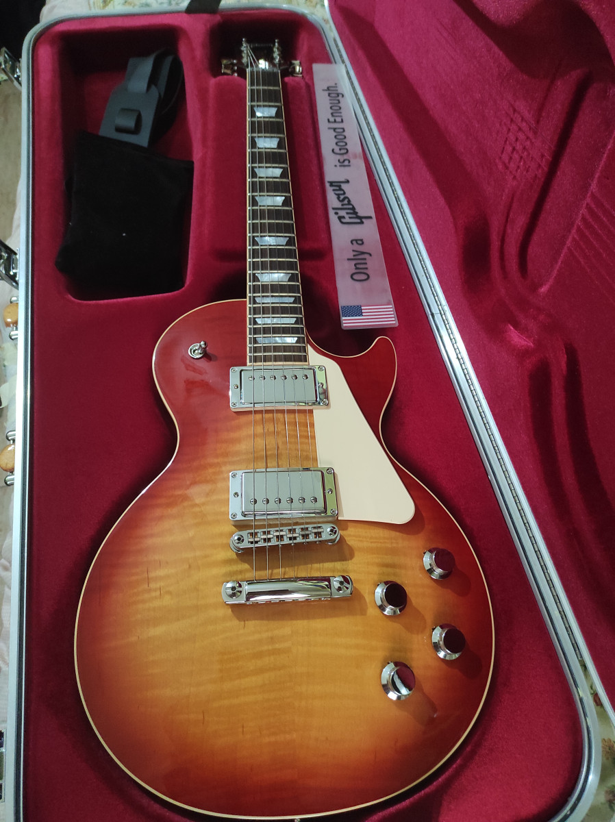 Hola vendo o cambio está Gibson les paul traditional hp 2017 ,está nueva es la versión moderna de Gibson con rebaje en el talón mástil finito y potes de vol y tono Push/Pull y maciza sin aligeracion de peso ,le cambié el clavijero g force por unas clavijas Gibson grover ya que fallaba mucho y se volvía loco,una pasada de guitarra con un tono brutal que por desgracia no me acostumbro a ella yo soy más de guitarras picudas , incluye todas sus chuches ,estuche de aluminio,papeles...cambios yo soy más de picudas Dean ml, razorback signature de dimebag... washburn dime,dbz Bird of prey o venom,esp v,Gibson flying vamos picudas en general pero soy un adicto de dimebag jajaja,en caso de que la guitarra ofrecida sea de menor valor sería con ajuste económico a mi favor o si se puede meter material guitarril perfecto sin problema, en las fotos borro el número de serie por seguridad y evitar que copien para falsificaciones,un saludo.