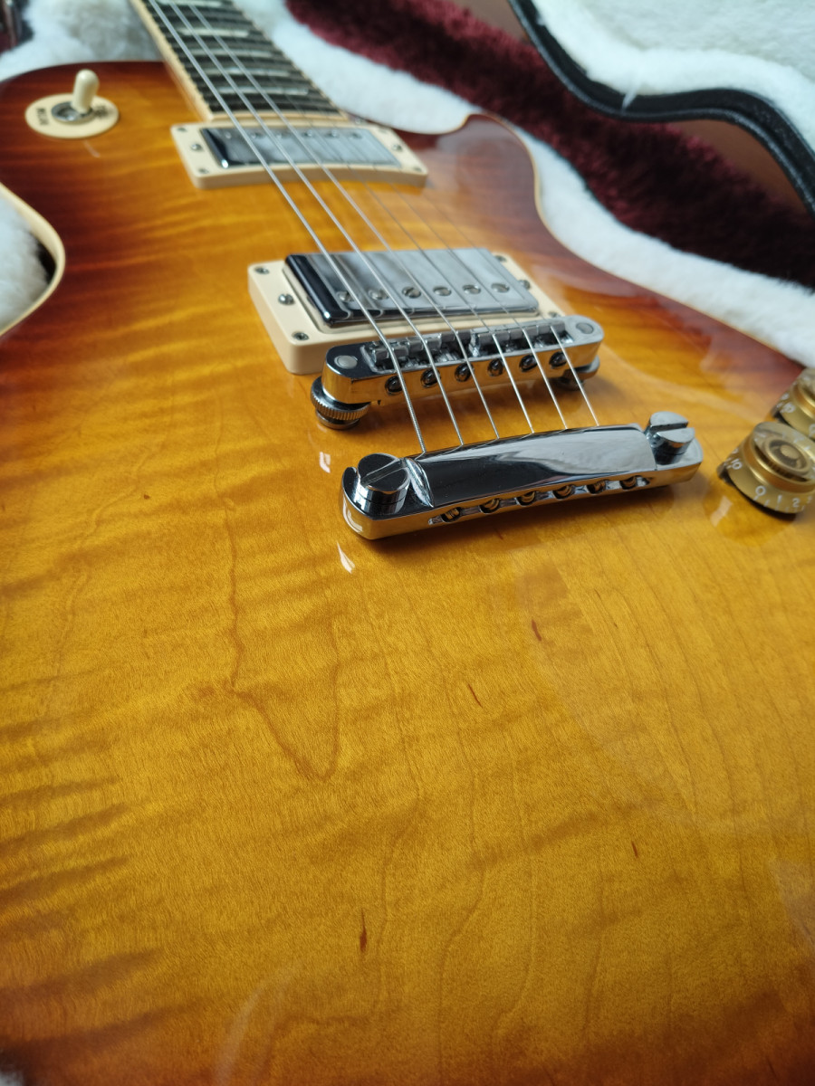 Vendo Les Paul Traditional del 2013. Toda maciza, con los trastes impolutos y muy pocas marcas estéticas. Está en muy buen estado para tener 12 años. Incluye papeles, golpeador y llave del alma. El estuche está como nuevo prácticamente. Es una guitarra que casi no ha salido de casa.