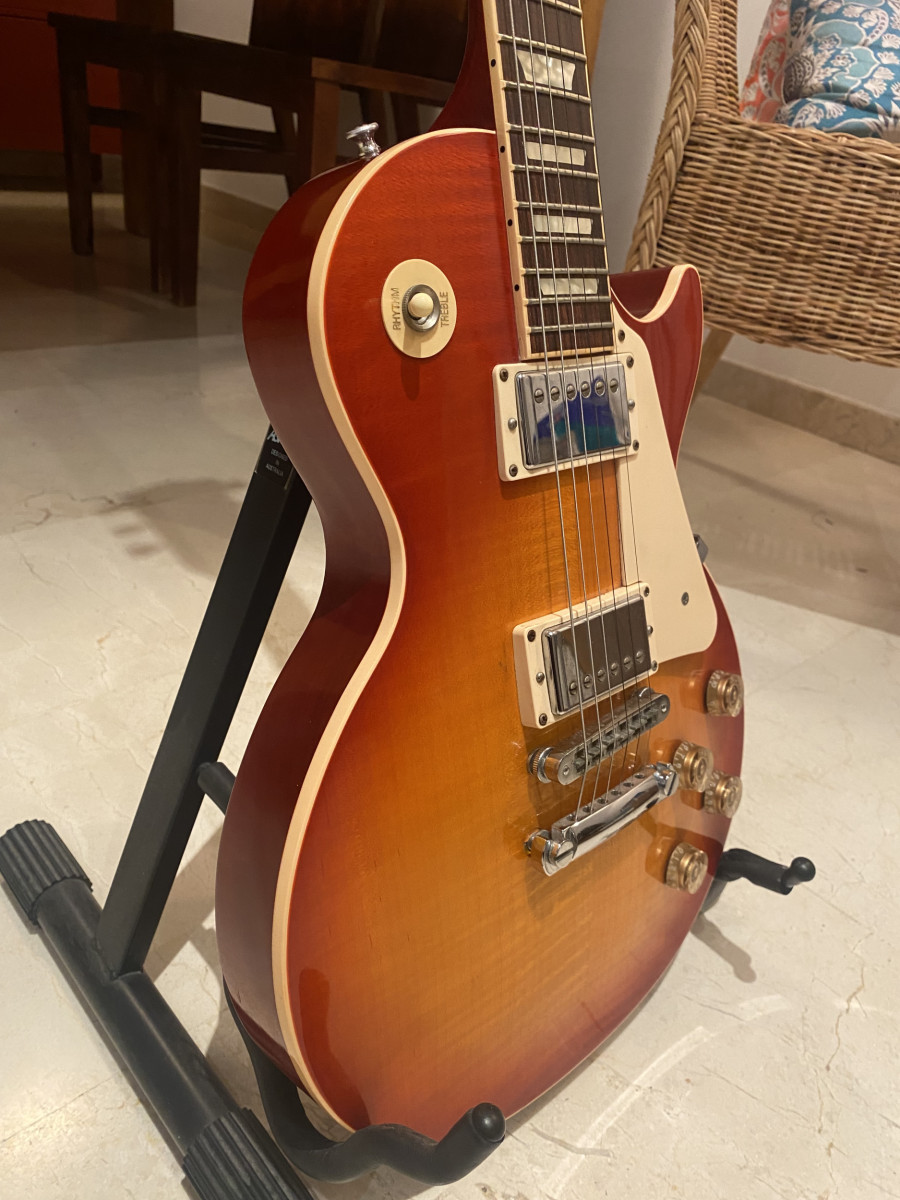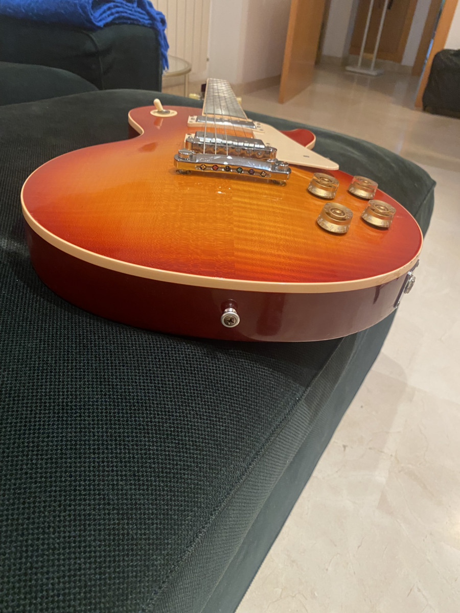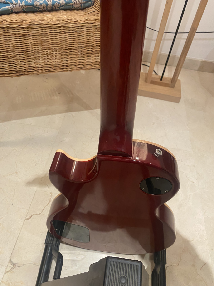Gibson Les Paul Traditional, tapa de arce flameado y cuerpo sólido de caoba. Guitarra con el peso, el tacto y el tono clásico que se espera de una Les Paul: sonido cálido, con sustain largo y mucha presencia. Mástil cómodo y estable, trastes bien conservados y herrajes en perfecto funcionamiento. Electrónica original y respuesta dinámica tanto en limpio como con saturación. Instrumento cuidado, sin modificaciones, fiel al carácter tradicional de Gibson. Ideal para blues, rock y estilos clásicos. Pequeñas marcas de uso.