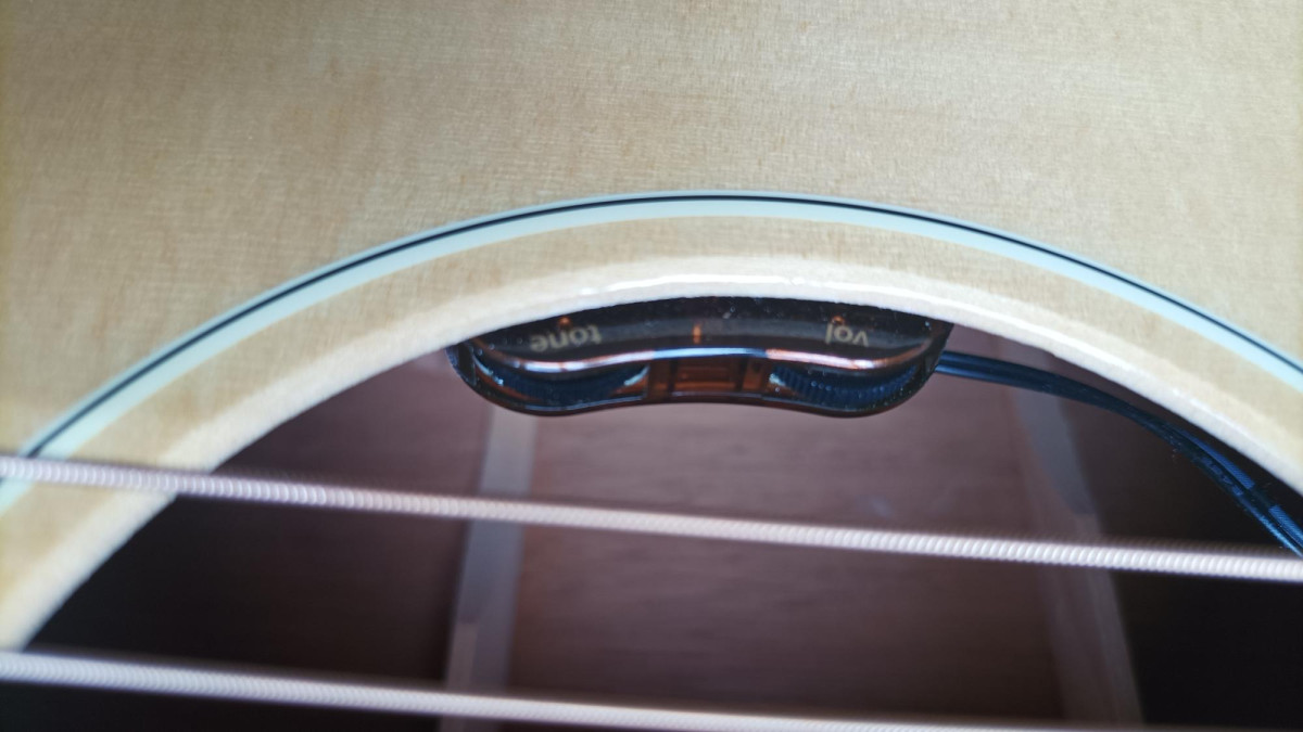 Tapa de picea maciza, lados y tapa de caoba maciza, anchura de la cejilla: 43,80 mm (1,725"), escala de 629 mm (24,75"), va con sistema de pastilla original LR Baggs VT, incluye estuche original.