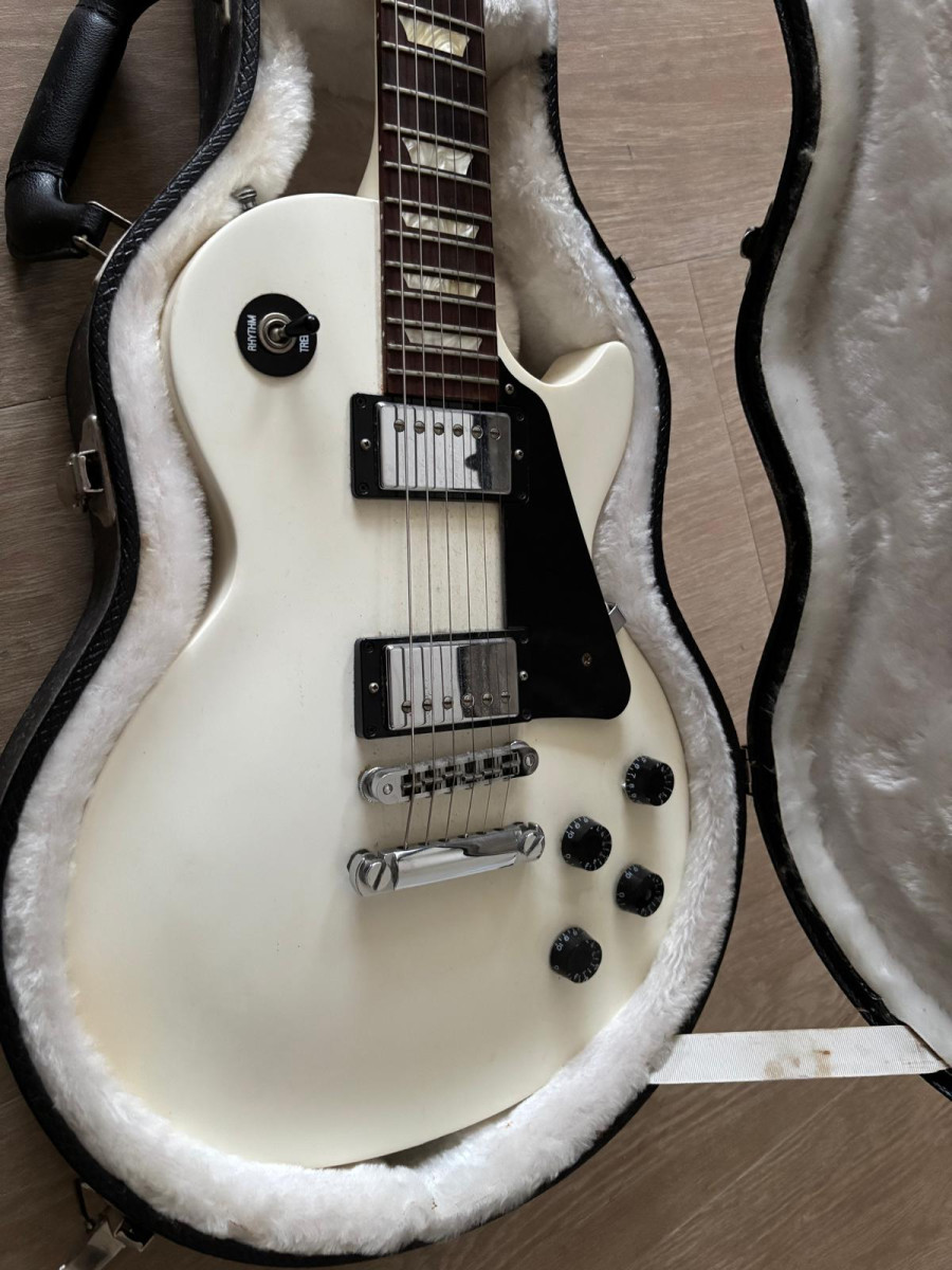 Vendo está excelente Gibson Lp Studio del año 2012 en color blanca (Alpine White) que se vuelve poco a poco en color Vainilla preciosa.... totalmente original,la guitarra tiene los trastes perfectos, prácticamente sin uso, tan solo una marca en la laca (del soporte), estuche original y su documentación.