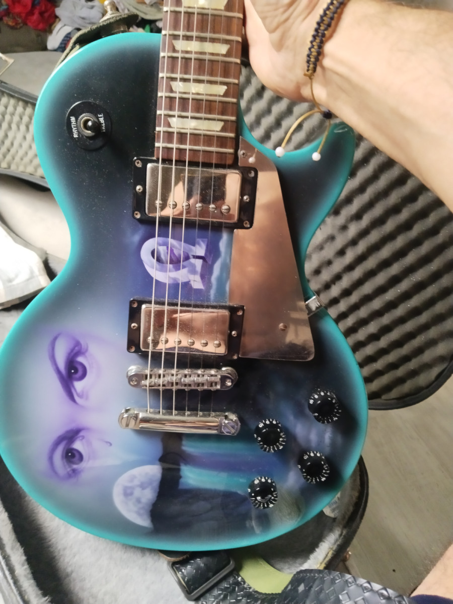 Vendo está original studio. La adquirí y exceptuando los primeros días permanece en el armario. Está en perfecto estado de uso, trastes, electrónica, maderas. Sin roturas ni desperfectos y sin ningún tipo de peros. Eso sí pesa bien,acizorra. El acabado se puede quitar y dejar en negro original(consulte a lhutier) pero así es única. Saludos