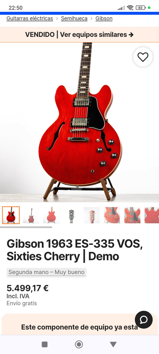 Es una maravilla, recreación exacta de una 335 del 63 en todos los sentidos. Se toca de maravilla y el mero olor de la nitro ya hace que te enamores de ella... Pero necesito hacer caja. La 335 definitiva... No he tocado una Murphy Lab pero el tratamiento VOS no le debe ir muy lejos.