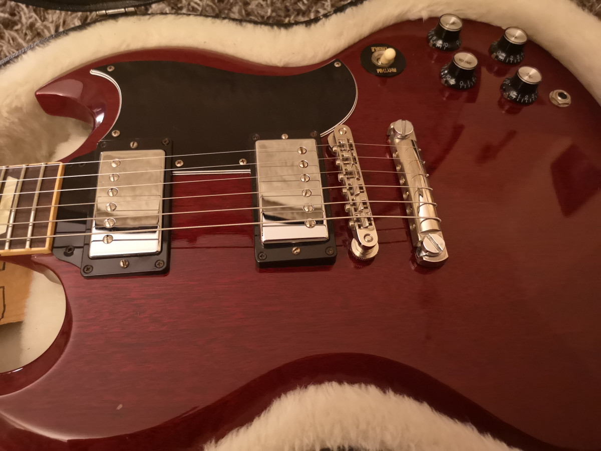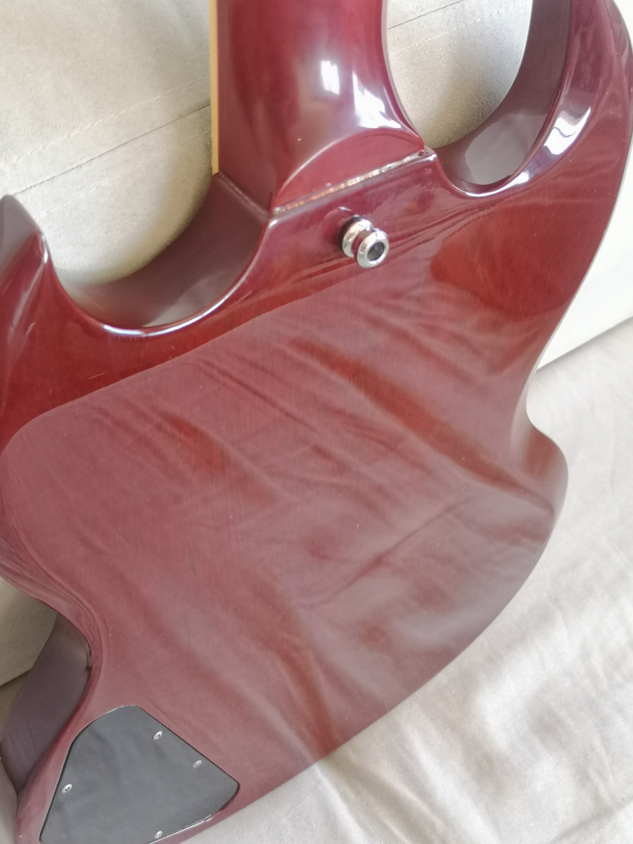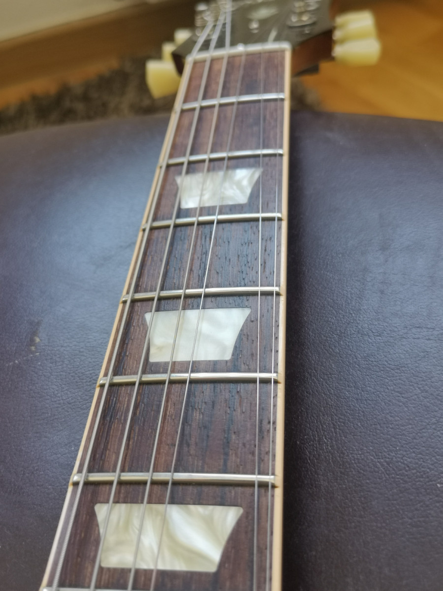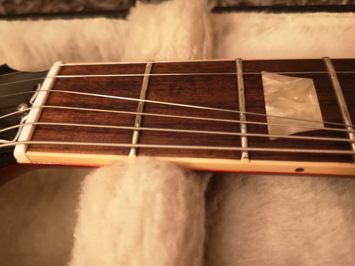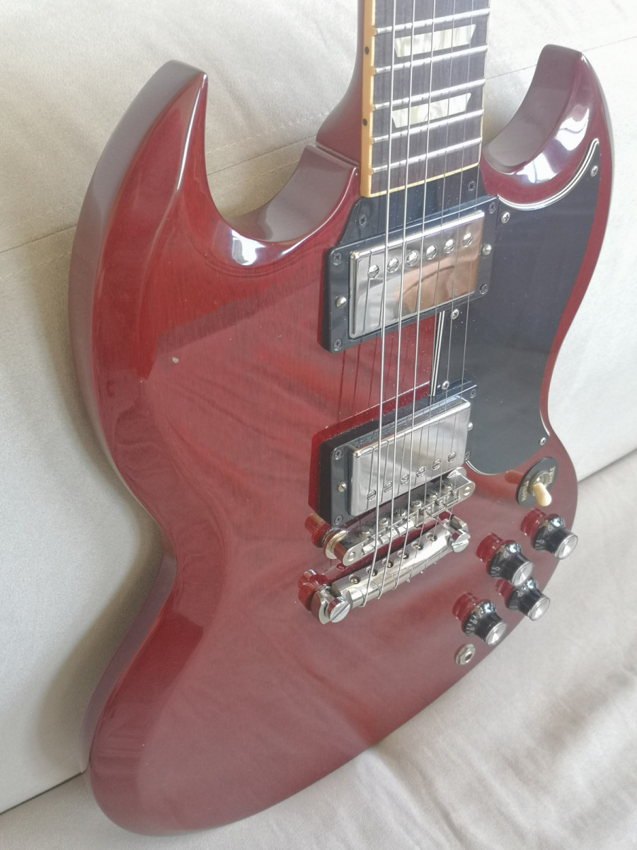 Hola, en muy buen estado, trastes perfectos y super bien ajustada, de las mejores SG que pasaron por mis manos, liviana, resonante y balanceada.
