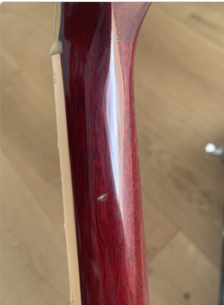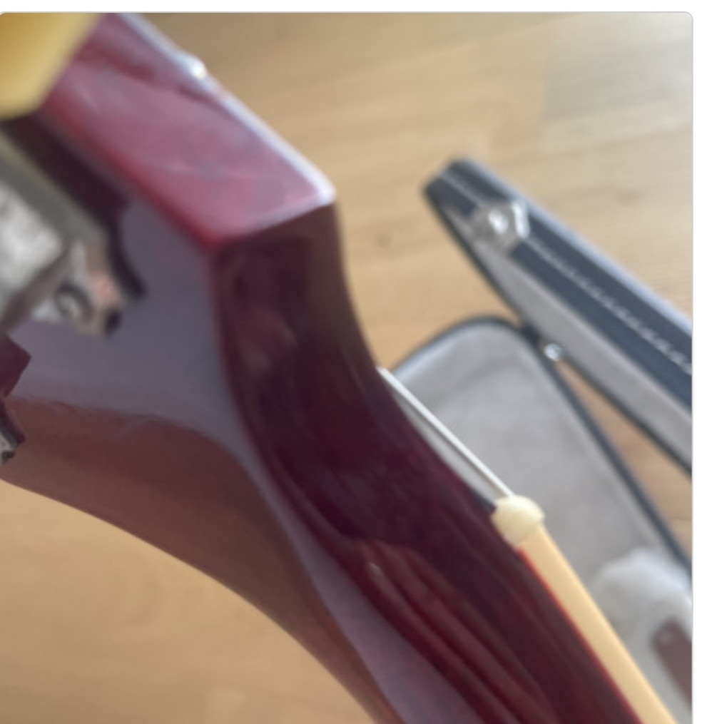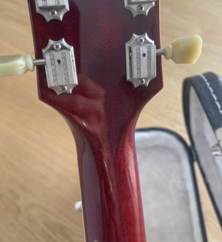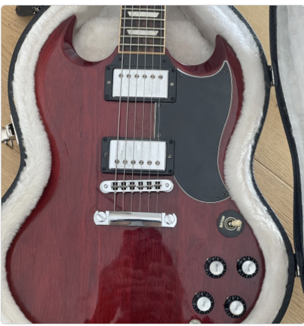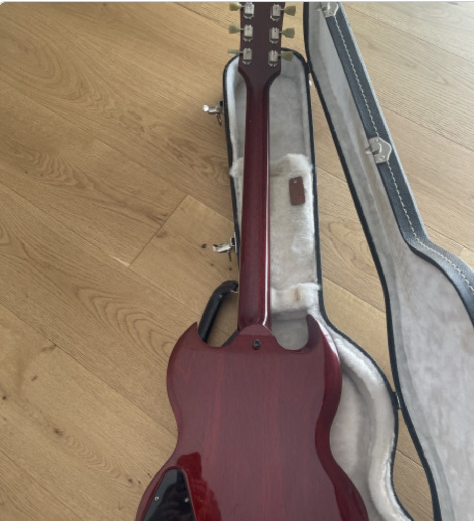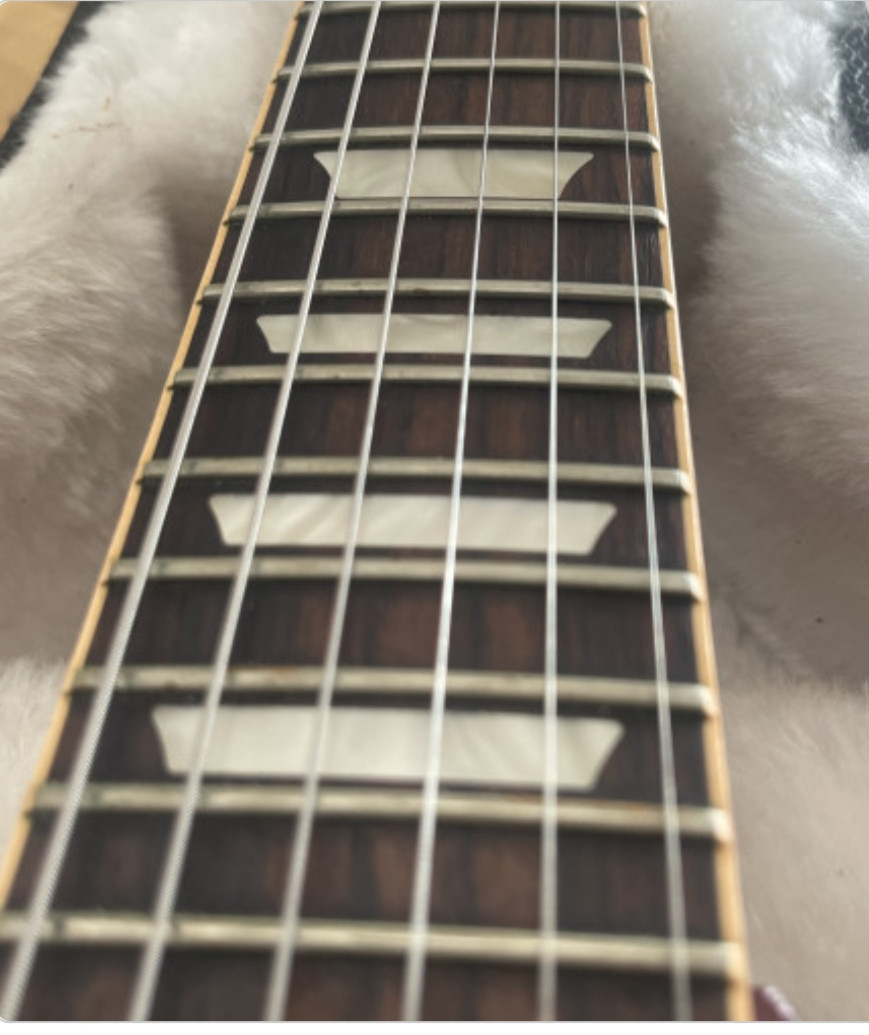 El la compró con la pala reparada en 2019 y está perfecta tanto a nivel estético como funcional. Doy fe de ello. Una SG espectacular a precio de derribo. Ajustada con 10-46 y cejuela de hueso. Va con su estuche original y sus papeles.
