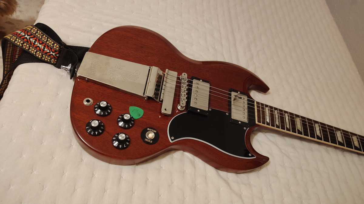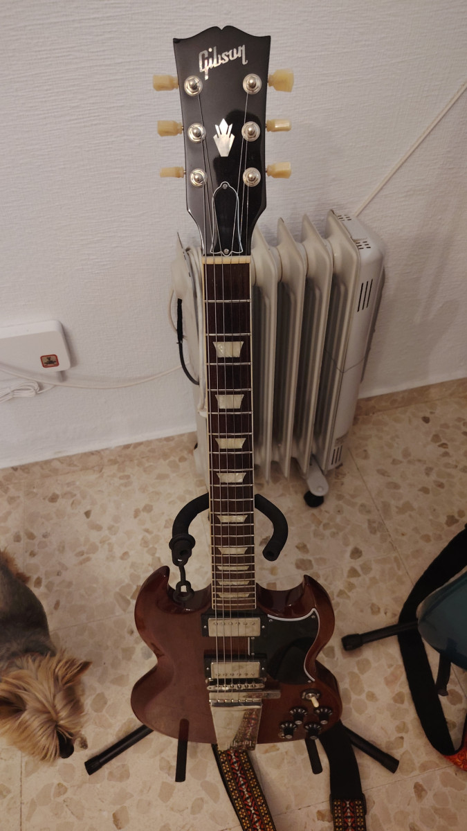 Buenas a todos,saco de nuevo ésta fantástica guitarra de sobra conocida, una Gibson SG 61 reissue con vibrola maestro.La guitarra tiene cambiados los potes de volumen y tono, aunque puedo entregar los originales. Ninguna rotura ni reparaciones. Información por privado,como siempre