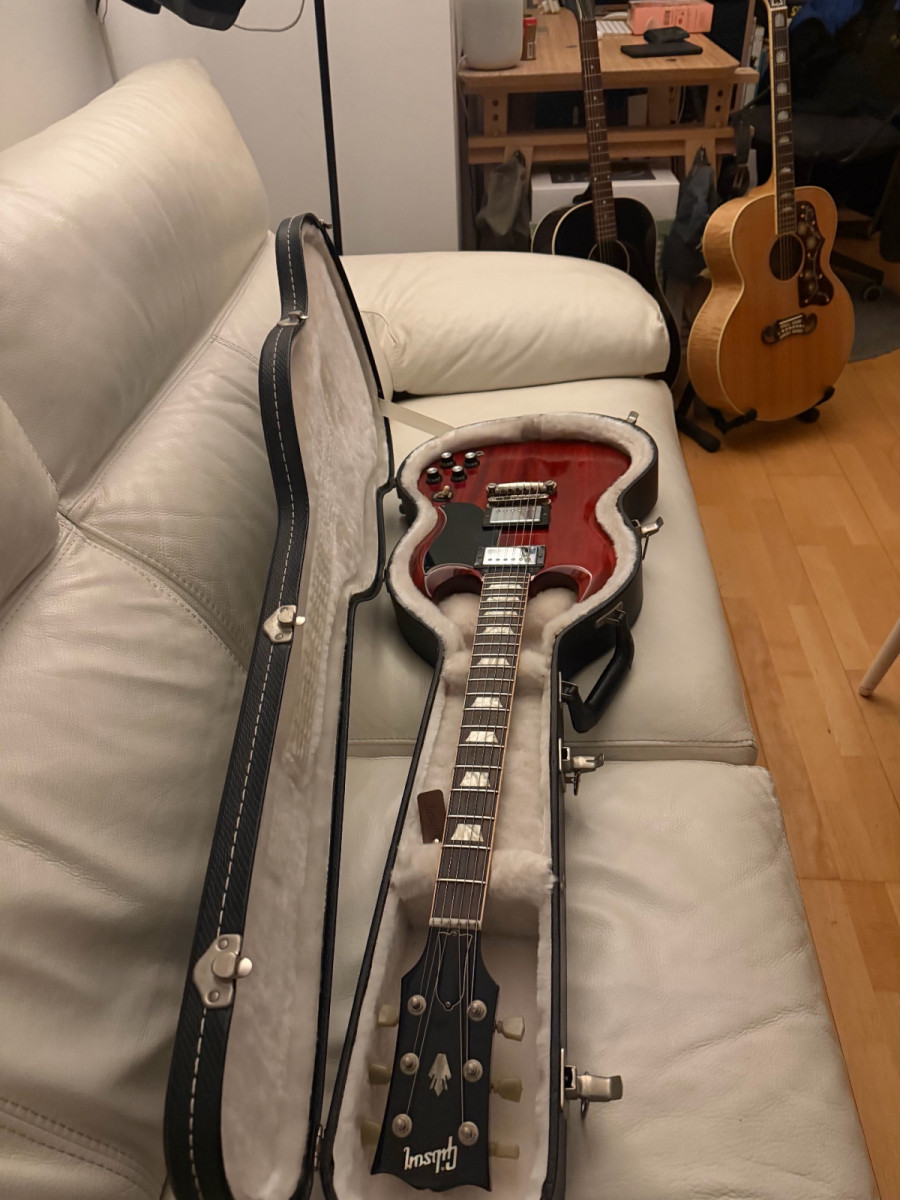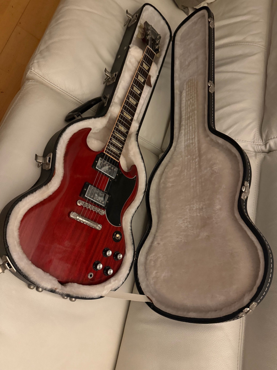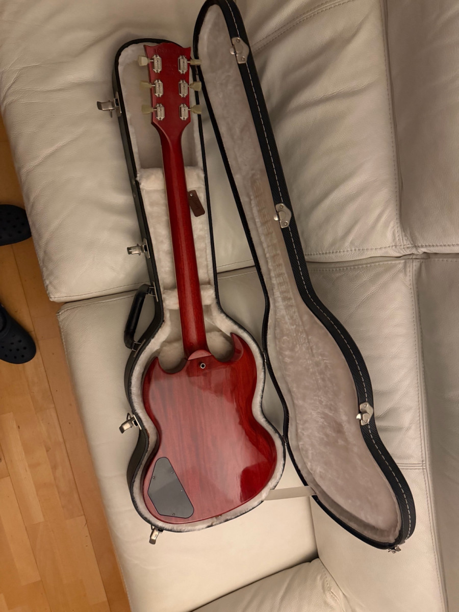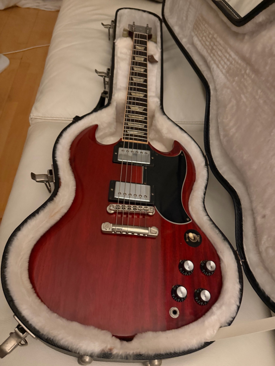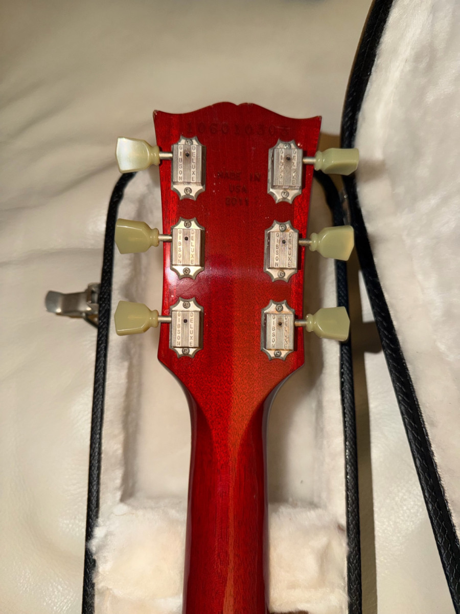 Case Gibson original y papeles. Puente ABR-1 y TOM de "Faber Alemania" hechas de aleaciones vintage, incluyo piezas originales. Pastillas Classic 57. Mástil muy cómodo. Acción baja sin trasteos. Clavijeros Gibson Deluxe, mantiene la afinación 10/10.