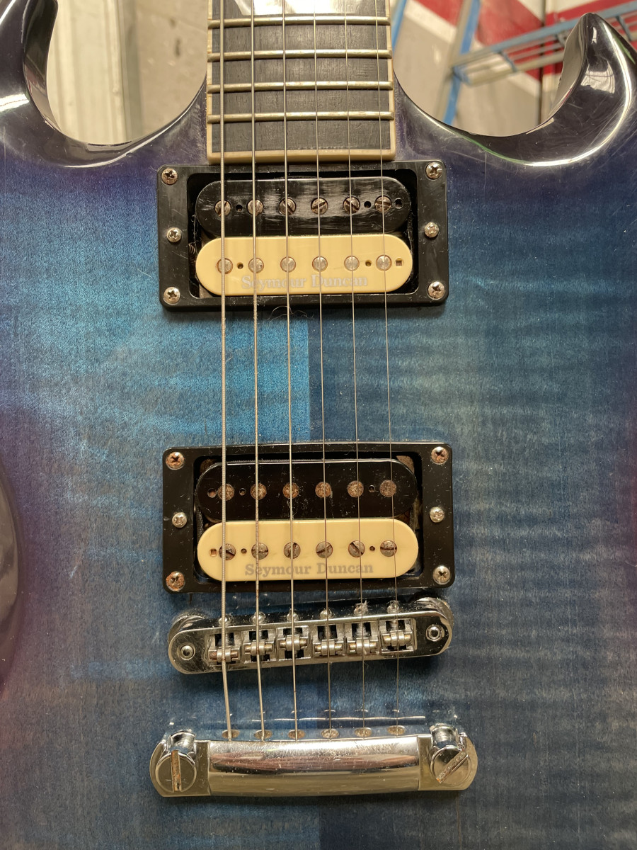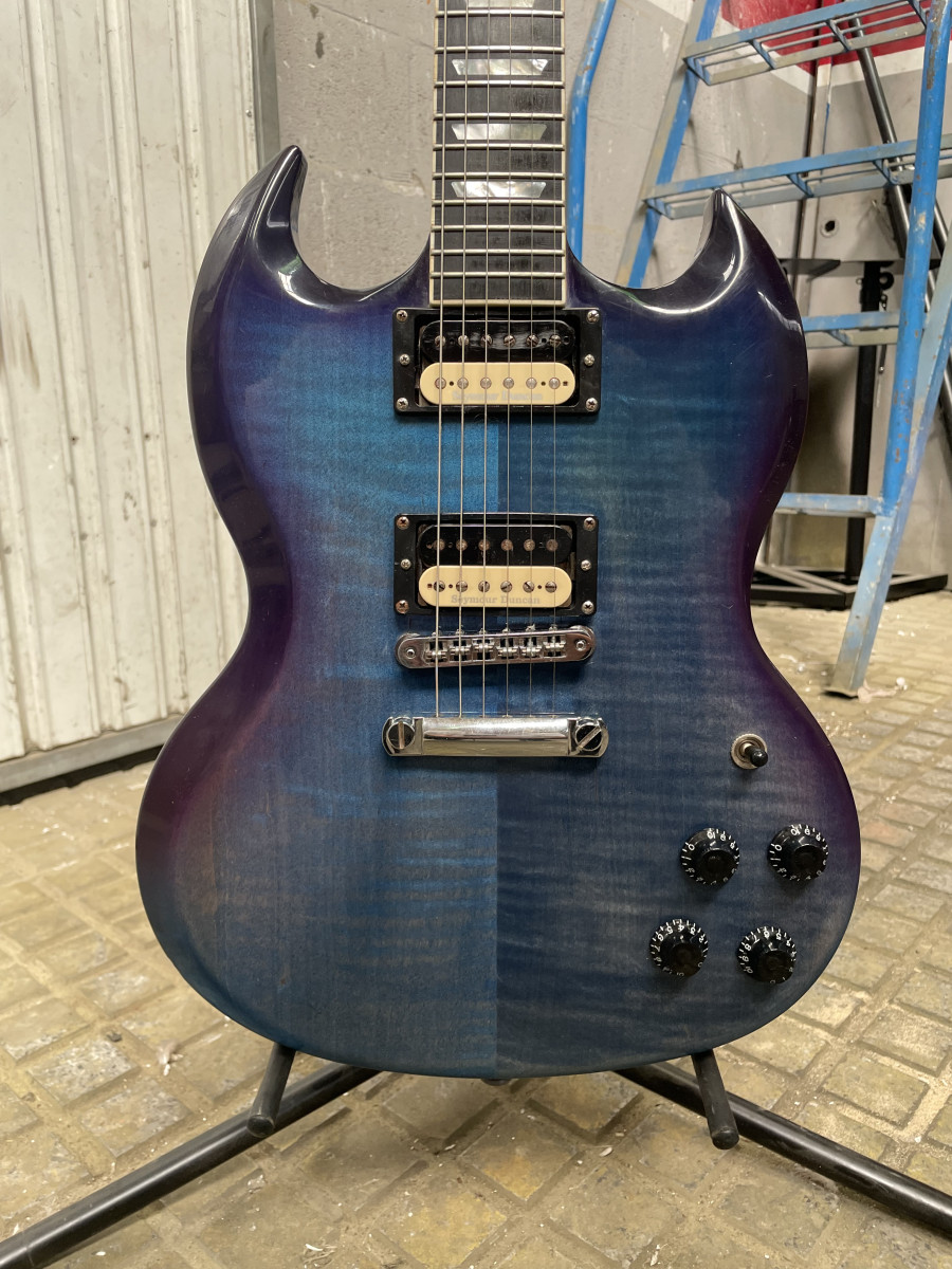 Se vende Gibson SG Modern de 2021 en Blueberry Fade, una guitarra muy particular y rara de ver. Tiene una tapa de arce que la acerca a un sonido Les Paul sin dejarte la espalda en los bolos. Las pastillas originales no las conservo, las que le puse son Seymour Duncan Custom 5 (puente) y del 59 (mástil, un clásico). Suena de cojones, mando vídeo a interesados. Recién revisada por luthier. Incluye papeles, correa, estuche original y llave Gibson original. Hago envíos.