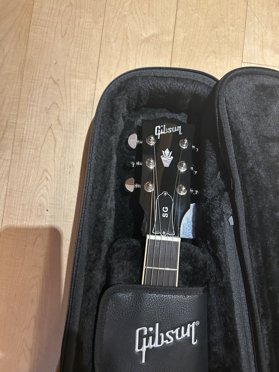 Gibson SG en perfecto estado. Comprada el día 1 de Abril de 2025. Con factura de compra y garantía de tienda. La vendo porque no me acostumbro a ella, apenas he tocado cuatro veces en casa. Pero no es para mí este modelo.