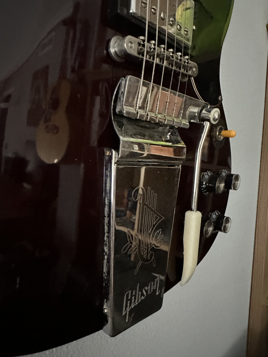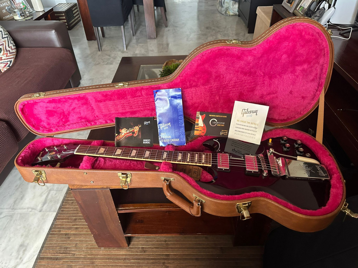 Pongo para cambio esta Gibson SG ''Original 2'' del año 2014 con Maestro Vibrola en color Aged/Dark Cherry