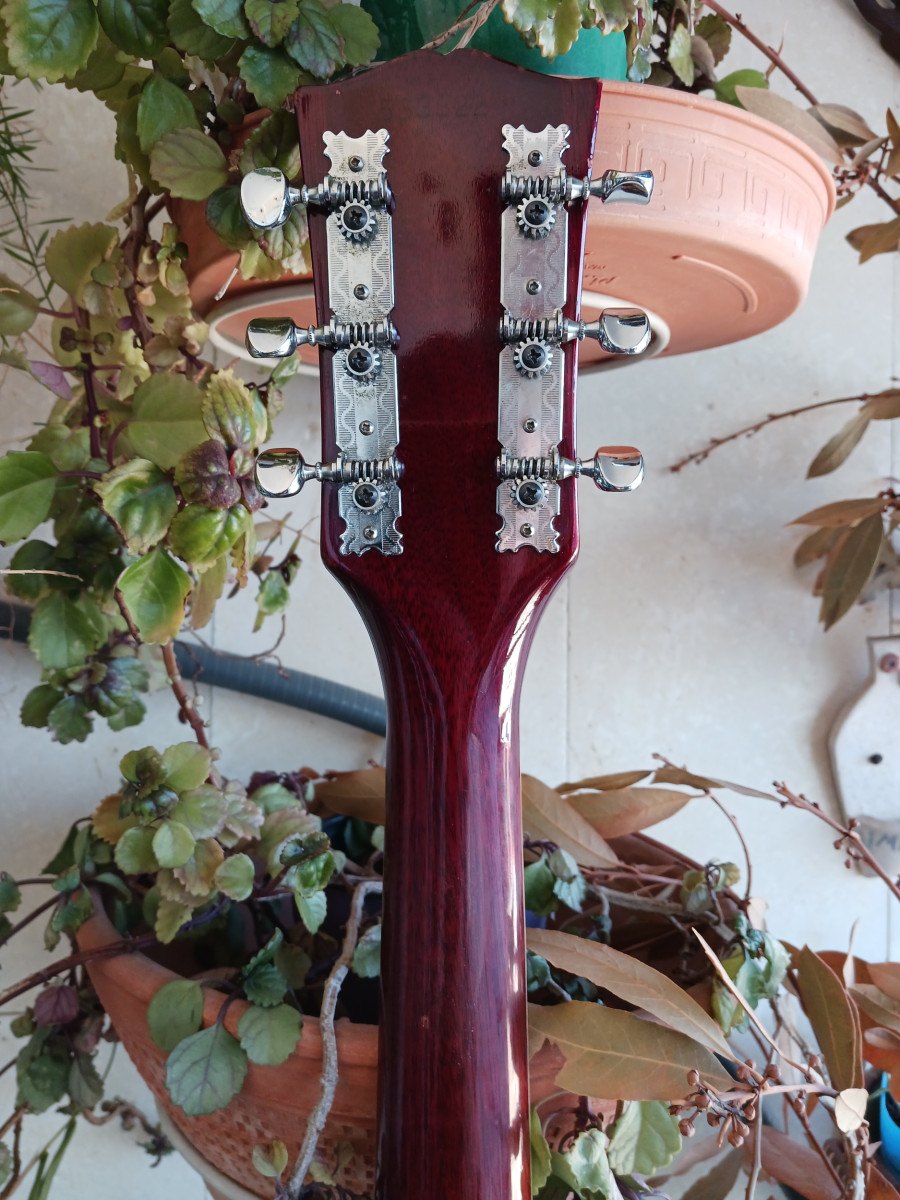 Los clavijeros originales están en excelente estado y funcionan a la perfección. Un mástil en C, cómodo y de forma elegante, es una delicia tocarlo.