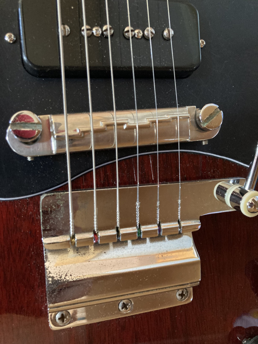 La guitarra ha sido restaurada por el luthier oficial de Gibson en Madrid, respectando los dings originales. Se le ha puesto un set de pastillas P90 de 1969 originales, unos potenciometros CTS (de 1965 con selector y cableado originales) , botones de potenciometros (Witch hat) y placa de vibrola originales y se la ha restaurado con nitrocelulosa a su color original.