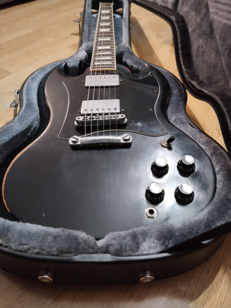 Gibson SG Standard de 1997, con un relicado espectacular! Está en perfecto estado, ajustada por Mr Jreature hace muy poco. Una guitarra brutal con un sonido épico. Con puente ABR1 y todo de serie.