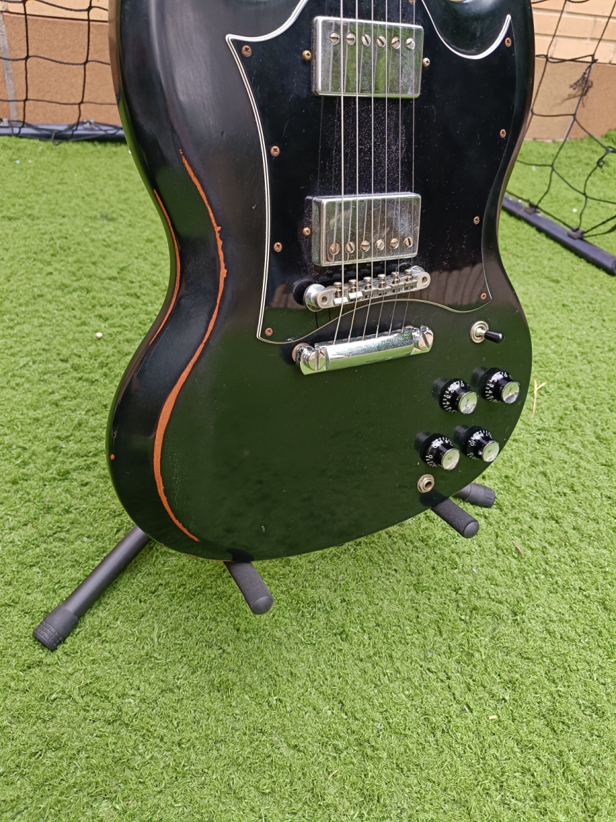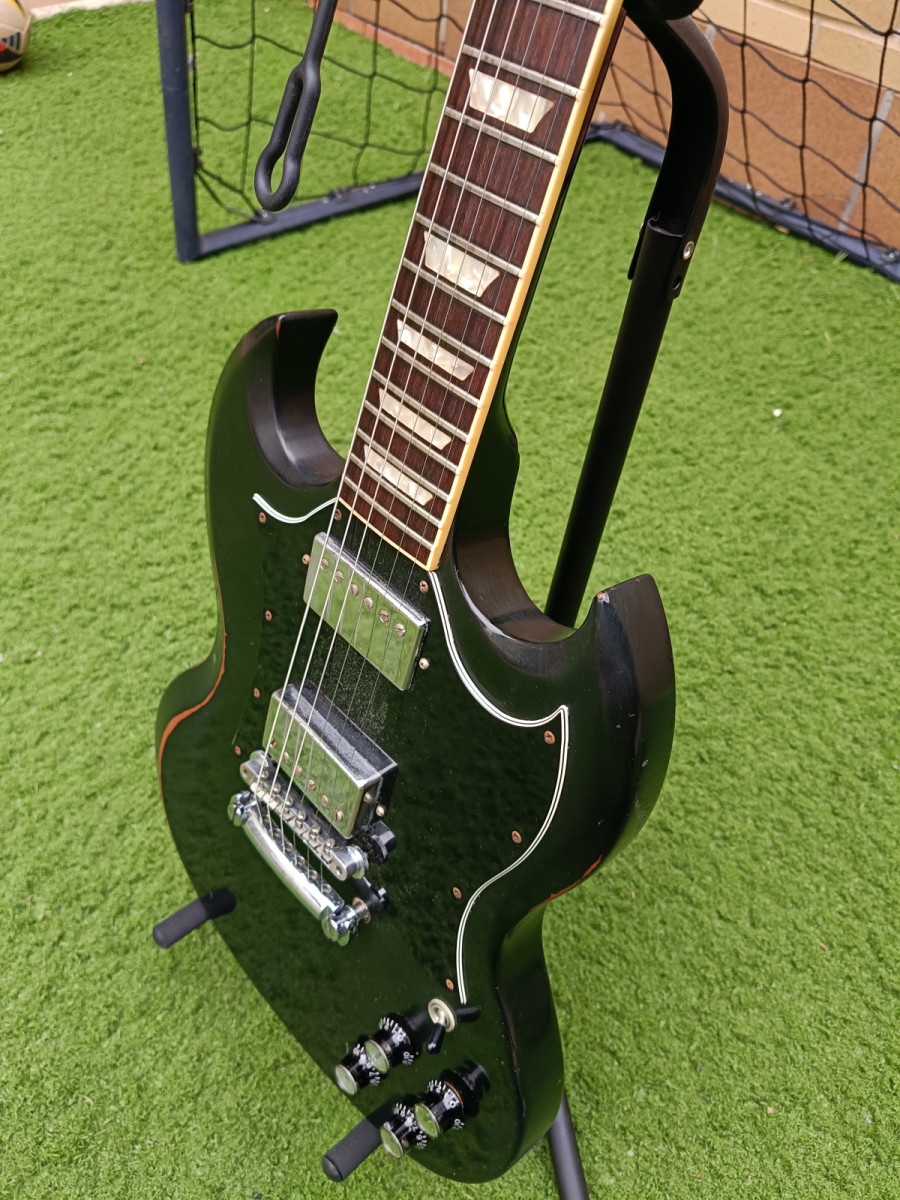 Gibson SG Standard de 1997, con un relicado espectacular! Está en perfecto estado, ajustada por Mr Jreature hace muy poco. Una guitarra brutal con un sonido épico. Con puente ABR1 y todo de serie.
