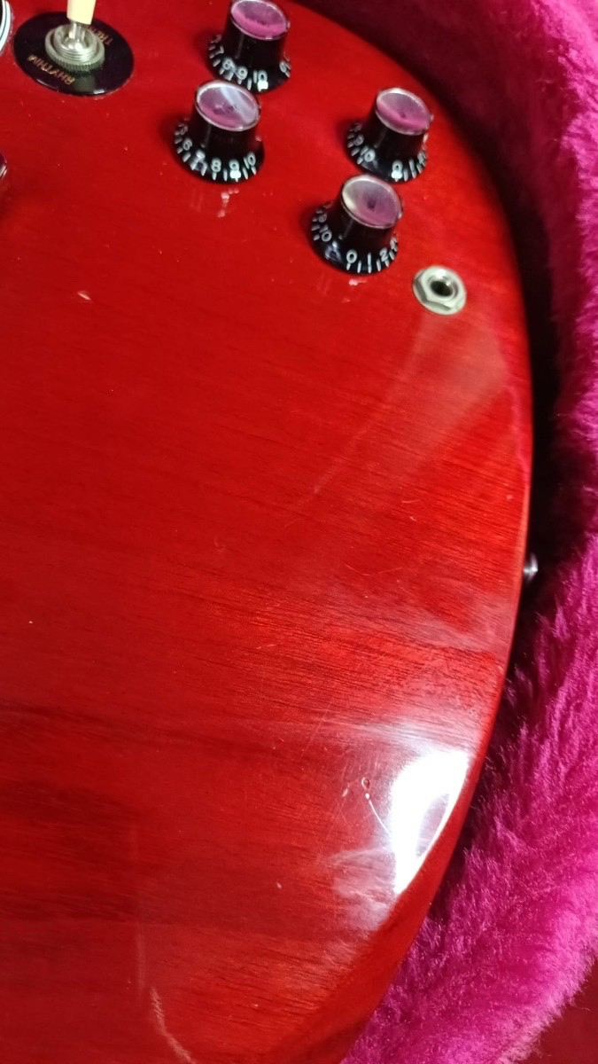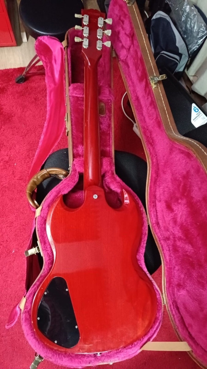 Gibson SG Standard del año 2002,en buen estado para sus 25 años,trastes con muy poco desgaste,no tiene desconchones,ni golpes solo algo de desgastes tipicos de la nitrocelulosa. Puente AVR1 y todo de serie! Envio a toda España,puedo activar el envio protegido pero llevo en el foro muchos años y mi muro habla por si solo! Busco una GIBSON LP STANDARD!!!