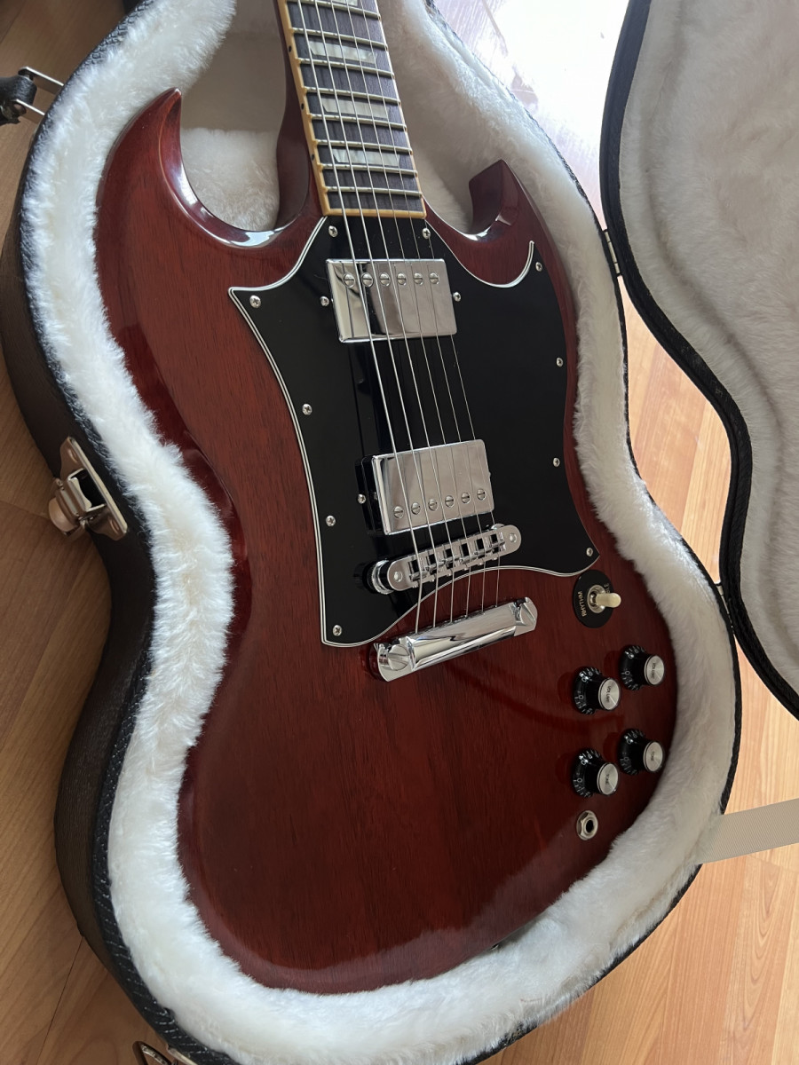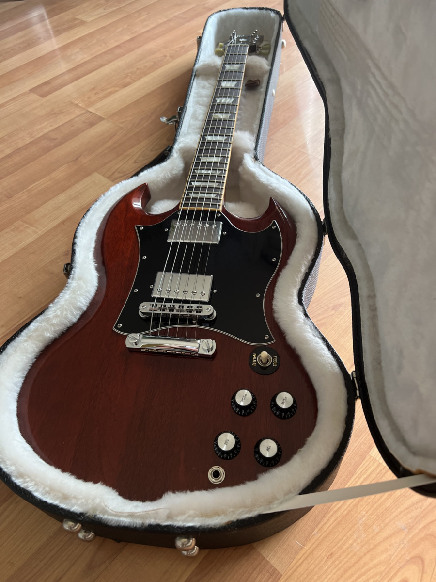 Se trata de una Gibson SG Standard del año 2008 (nada que ver con las de hoy en dia) en estado de tienda.