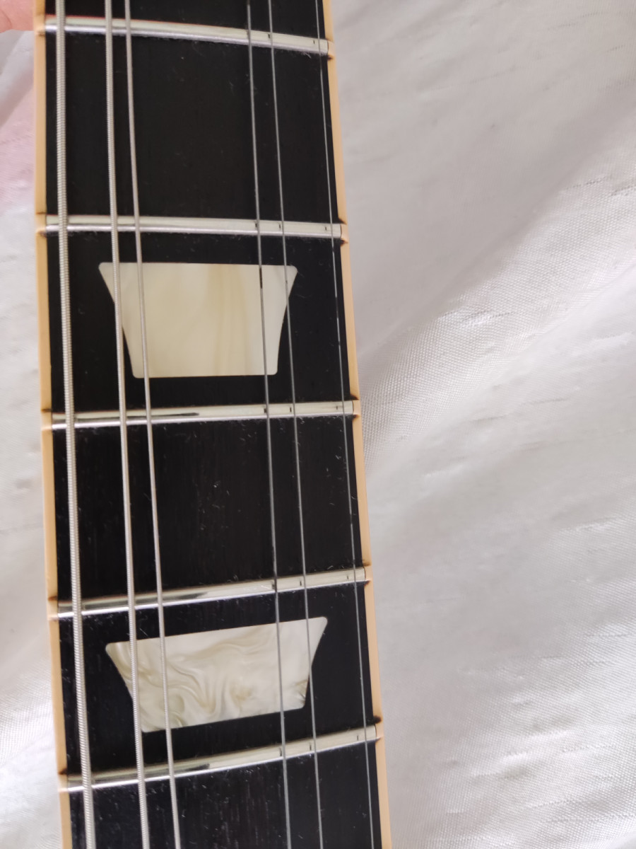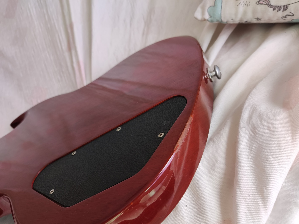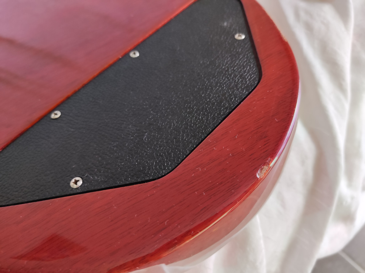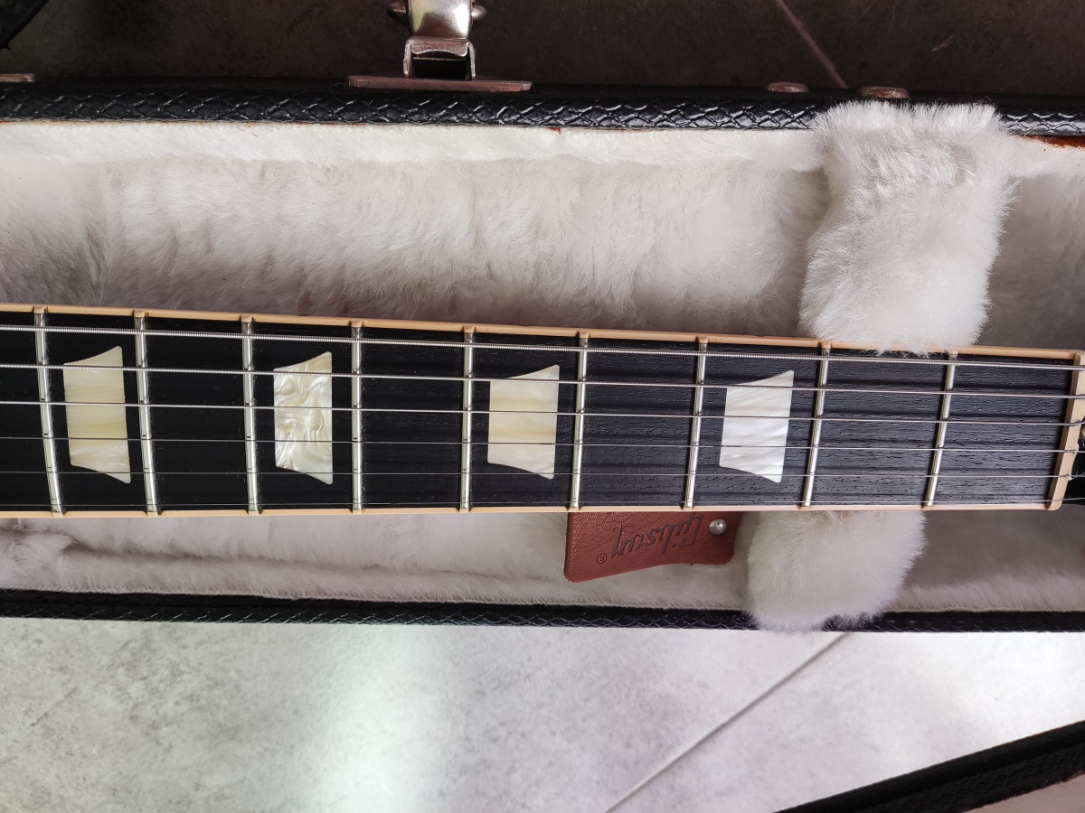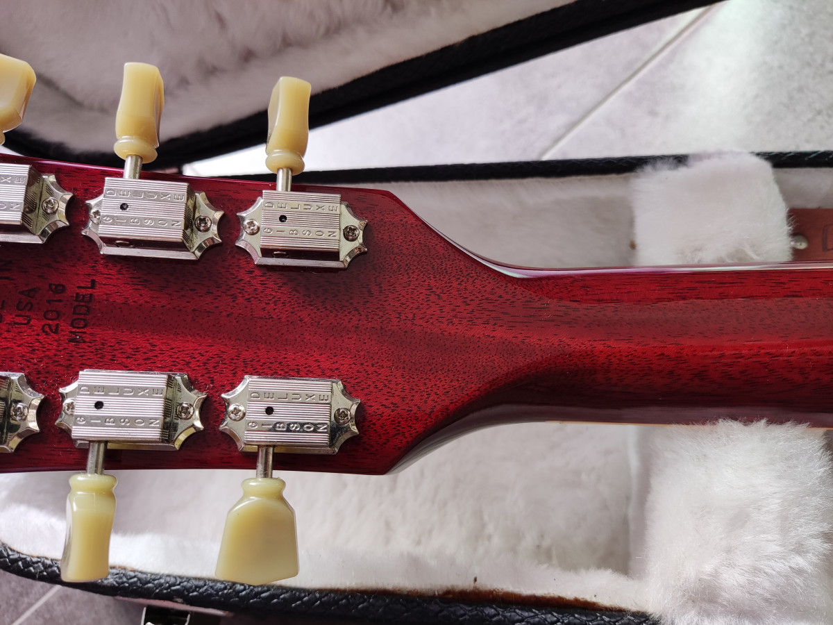 Hola buenas, no me voy a extender con las características porque creo que ya sabéis cómo es una SG standard tradicional de toda la vida. La compré hace poco y le he pulido y sacado brillo a los trastes, limpiado e hidratado el diapasón y la entrego con un juego de cuerdas nuevo Ernie Ball 10-46. También he limpiado y perfumado el estuche rígido. Tiene dos raspones en la parte de atrás del cuerpo, en el canto y algún ding, pero solo estético de la nitro y sin importancia, por supuesto no está de más decir que la pala está perfecta, sin golpes ni reparaciones. Es la segunda Standard que tengo y es prácticamente igual a la otra en cuanto a sonido/tono, la verdad que en las SG Standard parece que siempre son consistentes en calidad. Si lo que buscas es el tono del rock y blues es una apuesta segura y suena como esperas que suene una SG.