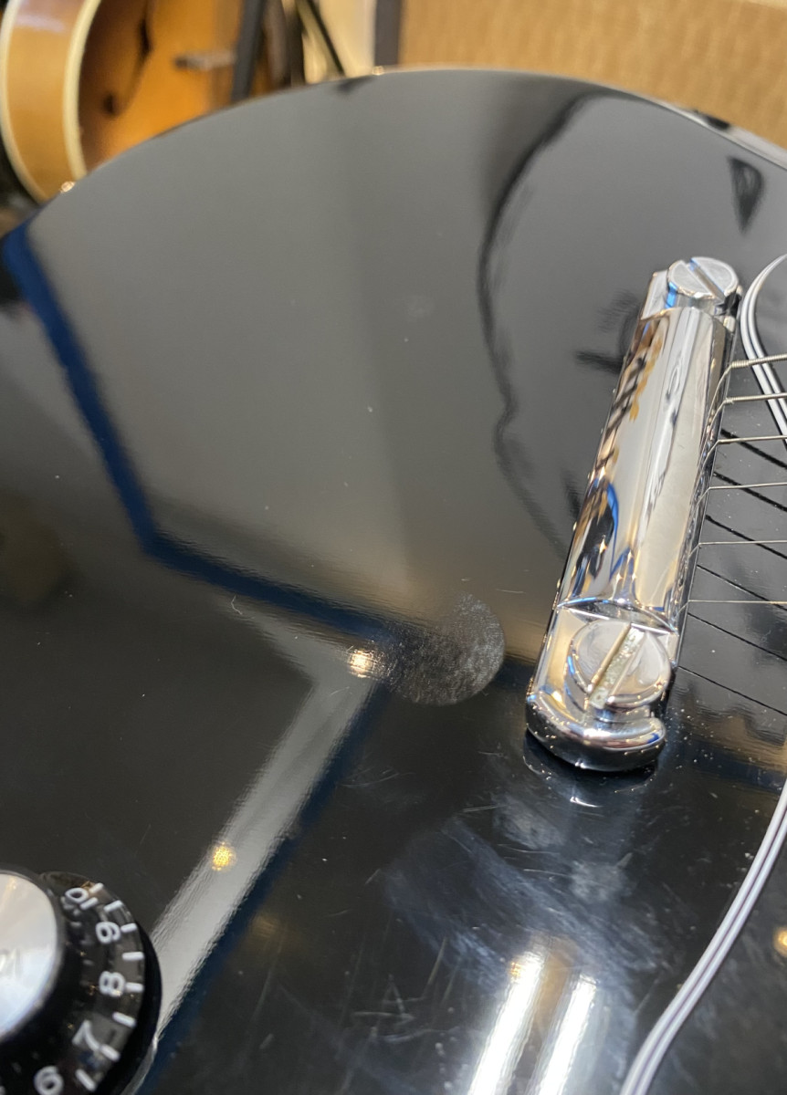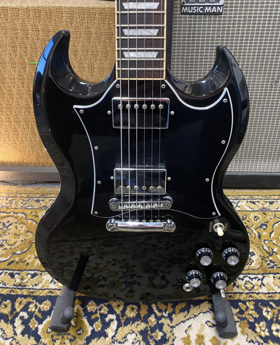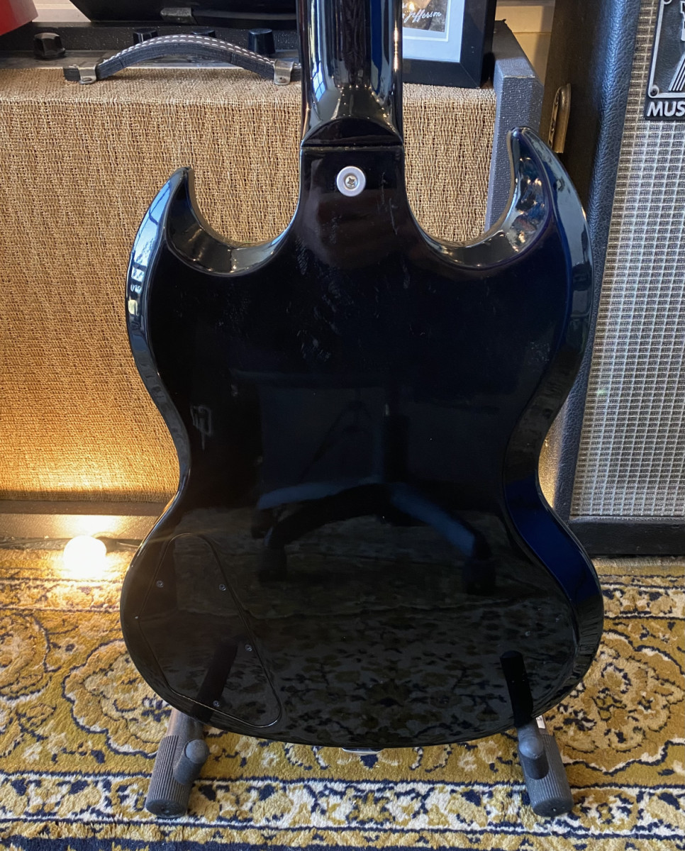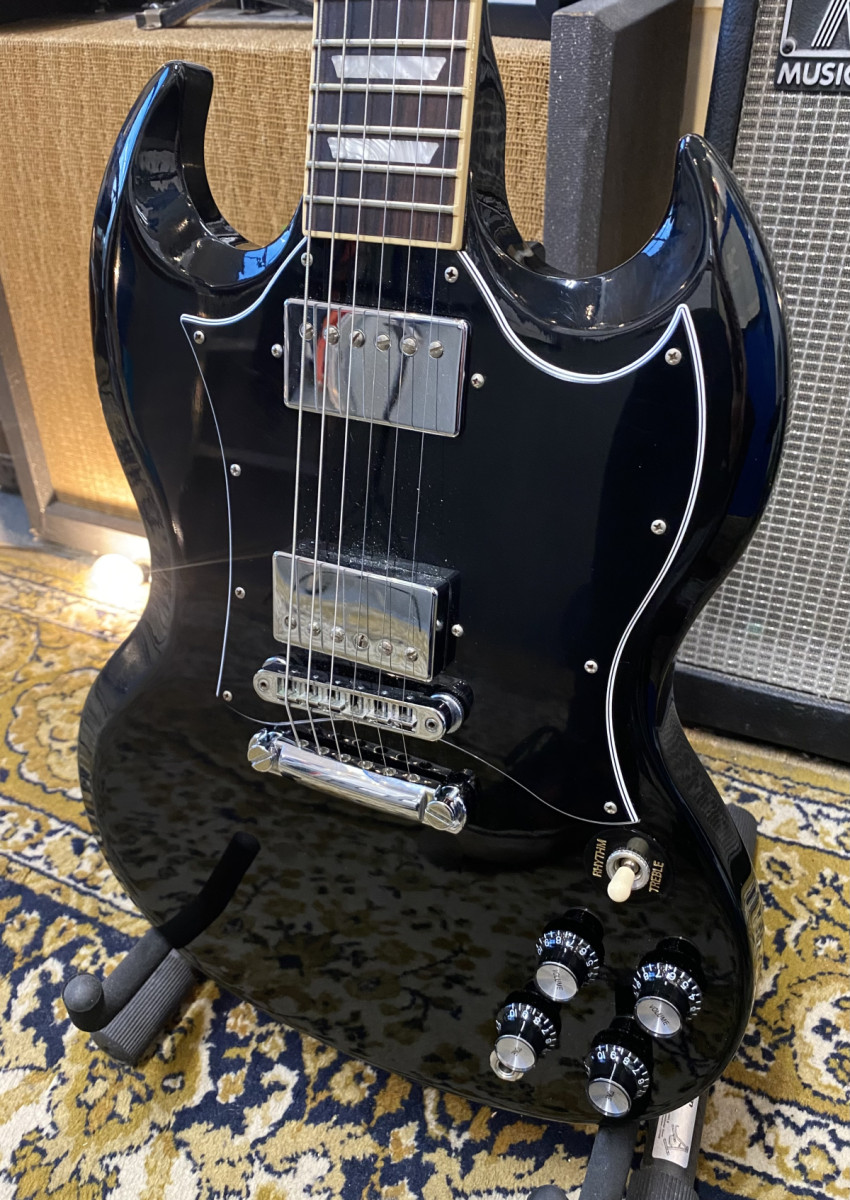 Vendo esta Gibson SG Standard Ebony de 2022. Mejorada con afinadores de bloqueo Grover; es muy estable y mantiene la afinación muy bien. Tiene unas marcas que se ven al trasluz justo detrás del puente porque llevó Bigsby, al igual que en el enganche de correa (ver fotos). Por lo demás perfecta y recién ajustada; es mantequilla. Rock por los cuatro costados. Viene con el premium soft case de Gibson con el que venía de tienda. 1350 €. No cambios y no regateos. Por 250 € más puedo añadir un Bigsby B3 (anunciado en mi perfil) con sistema Towner USA que es el que llevaba puesto. A toda prueba en mi estudio en Madrid, puedo mandar a la península a cuenta y riesgo del comprado, yo embalo a prueba de bombas.