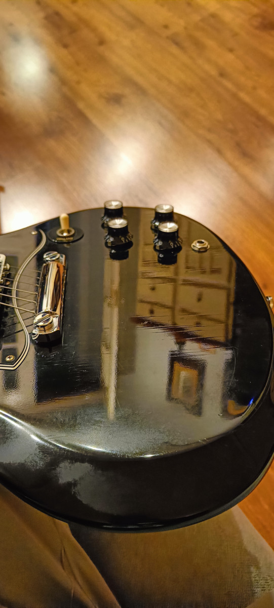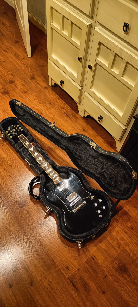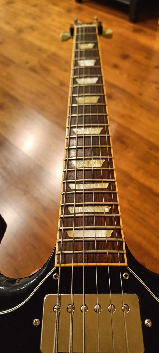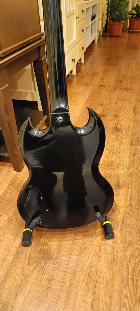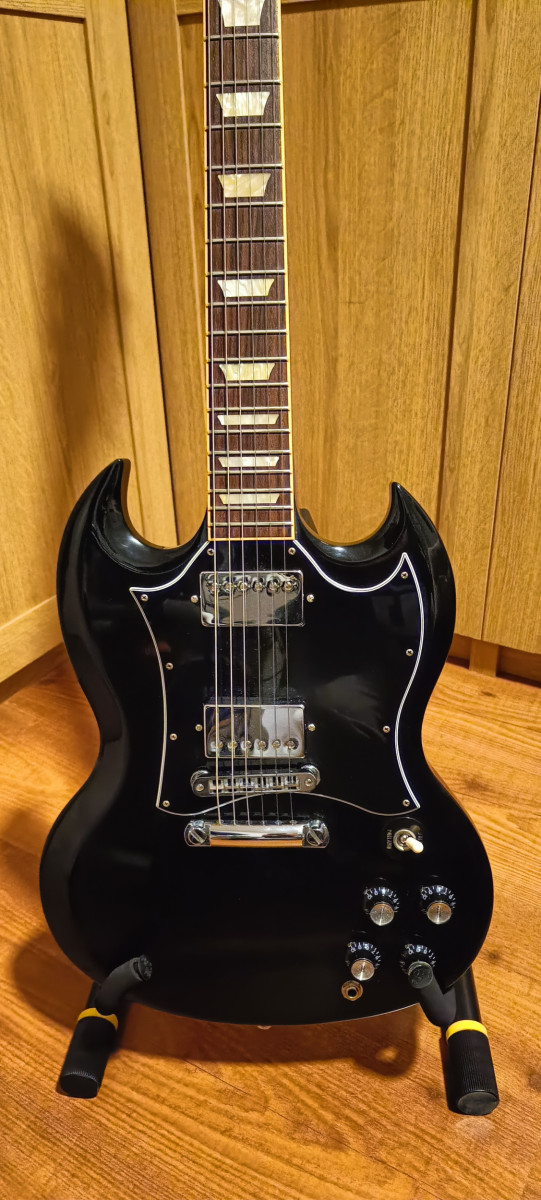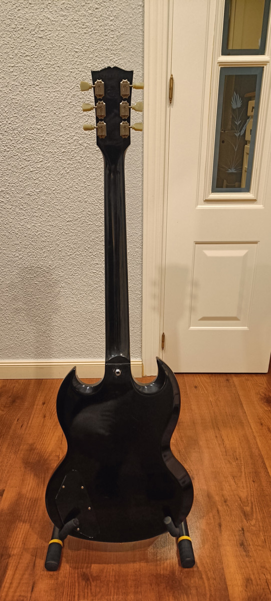 A esto hay que sumarle que tiene unas pastillas réplica de las T-top y electrónica a juego hechas por Ballestone que la pone en otro nivel de una SG standard.
