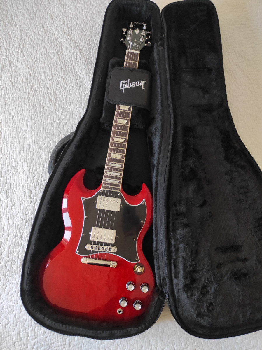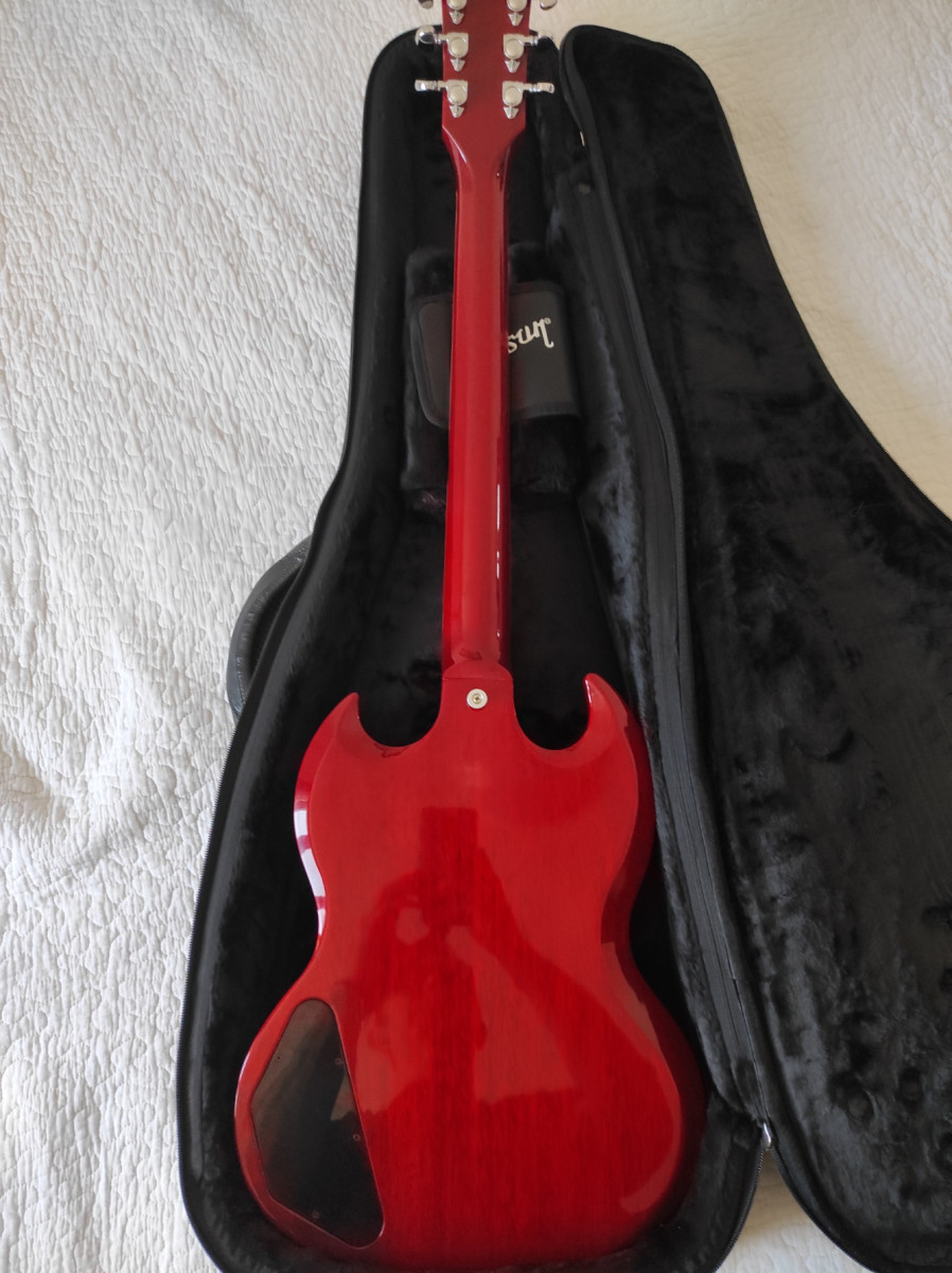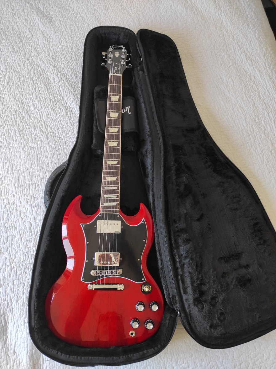 Gibson SG Standard Heritage Cherry, como podéis ver que belleza con todos sus accesorios y su chuches.