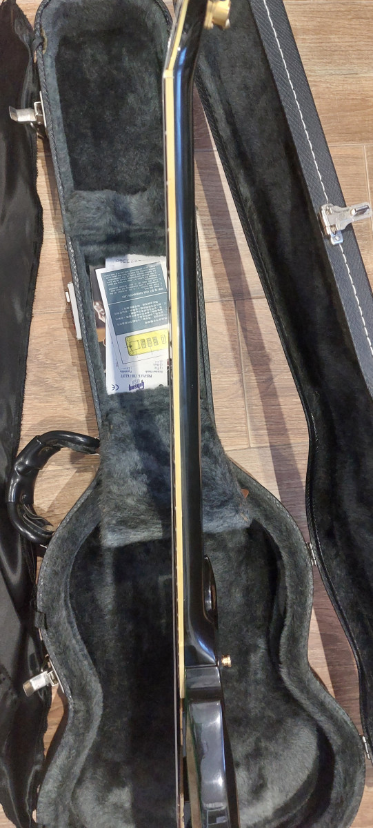 Viene con su estuche original y su doc. La guitarra esta 100% de serie a excepción de los trastes. Fue retrasteada intachablemente y ahora monta unos trastes más "grandes" que los gibson de serie (no se que modelo son) lo que la hace tremendisima, se toca increible.