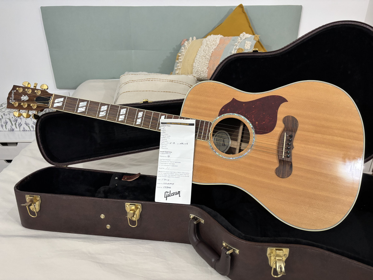 Guitarra acustica Gibson Songwriter 2019 Standard Antique Natural. Aros y fondo rosewood macizo tapa de abeto macizo. Previo LR Baggs VTC con controles en boca. Se entrega ajustada al milimetro, mastil recto, humedad controlada y mucho hueso por comer del puente, perfecto estado con su estuche original. No negociable. Podria valorar cambio por Strato o telecaster american standard o custom shop ajustando diferencias.