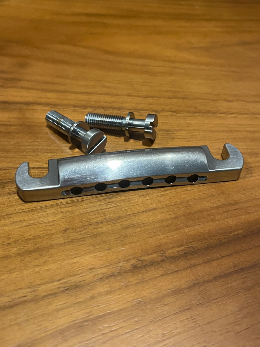 Vendo un Gibson Stop Bar junto a sus Studs originales, color chromo envejecido y relicado por el tiempo, sacados de una Les Paul Traditional 2008.