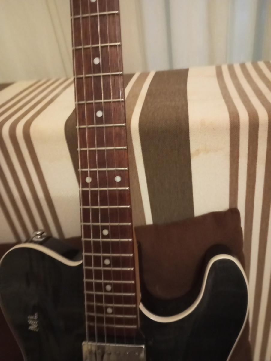 La guitarra presenta alguna pequeña marquita de uso, aunque está en bastante buen estado estético para lo mucho que la usé en directo.