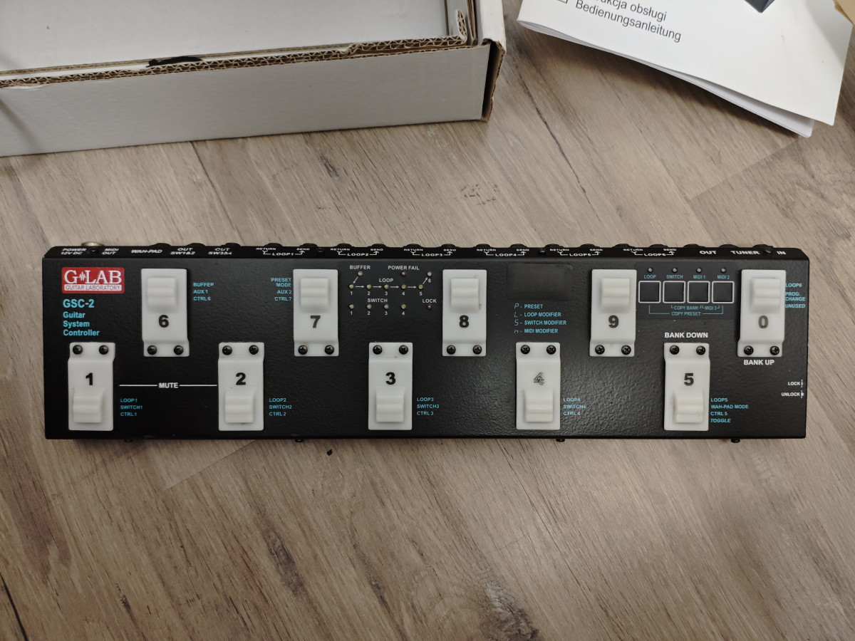 Vendo GLab GSC-2 Guitar System Controller, en perfecto estado de funcionamiento y con caja original, fuente de alimentación y manual.