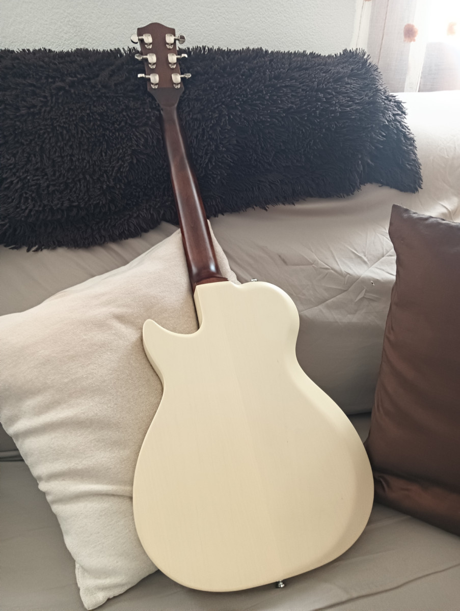 Aunque reconozco públicamente que me encanta esta guitarra tanto musical como estéticamente, en estos momentos necesito vender para adquirir otra chuche, así que quien quiera esta preciosidad en casa es este el momento.