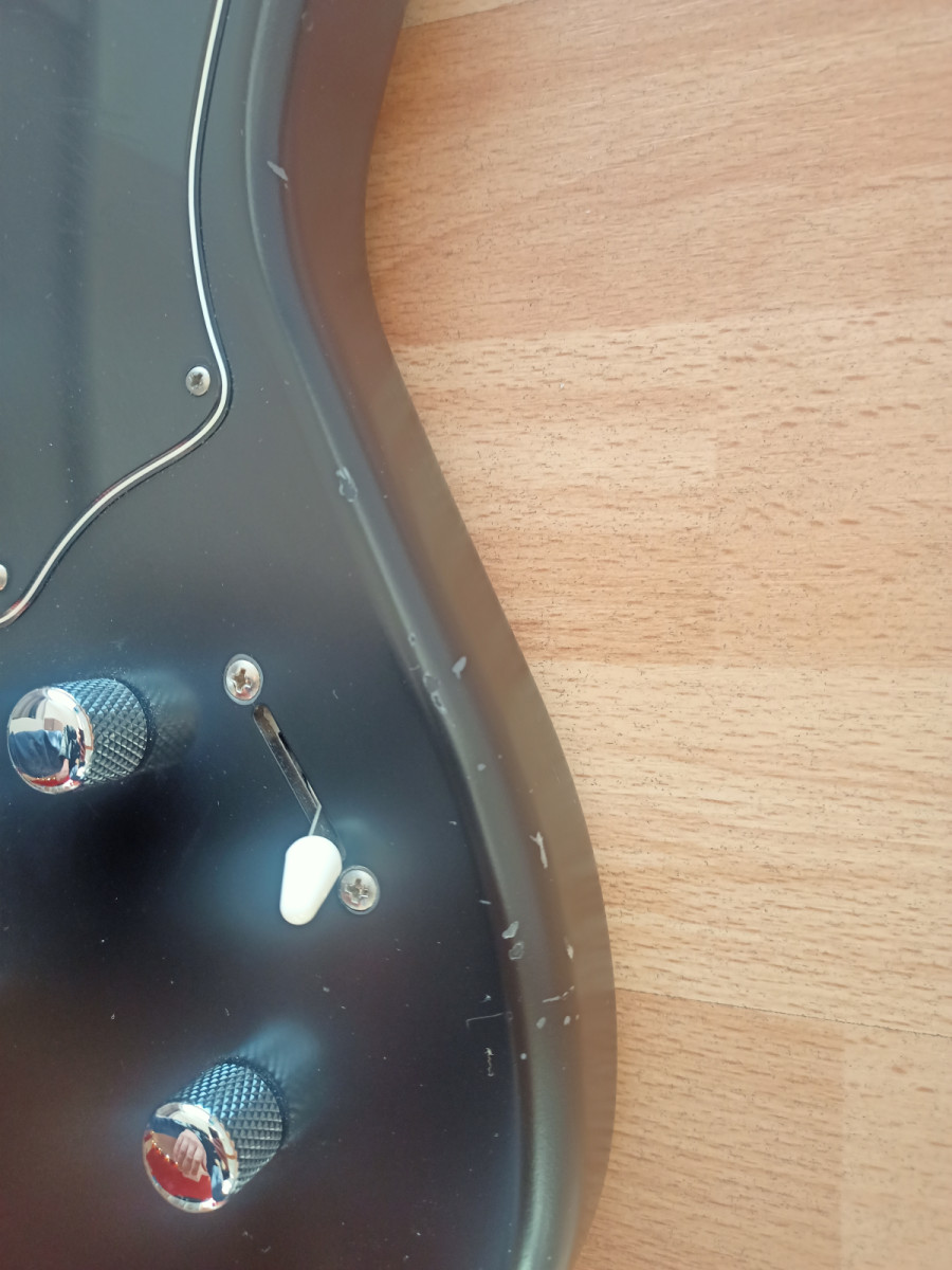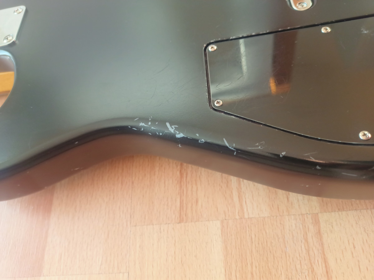 Tiene algunas marcas que he intentado reflejar en las fotos (aunque son bastante malichas) y los tornillos de la pastilla del mástil no son los originales. Nada que afecte funcionalmente.