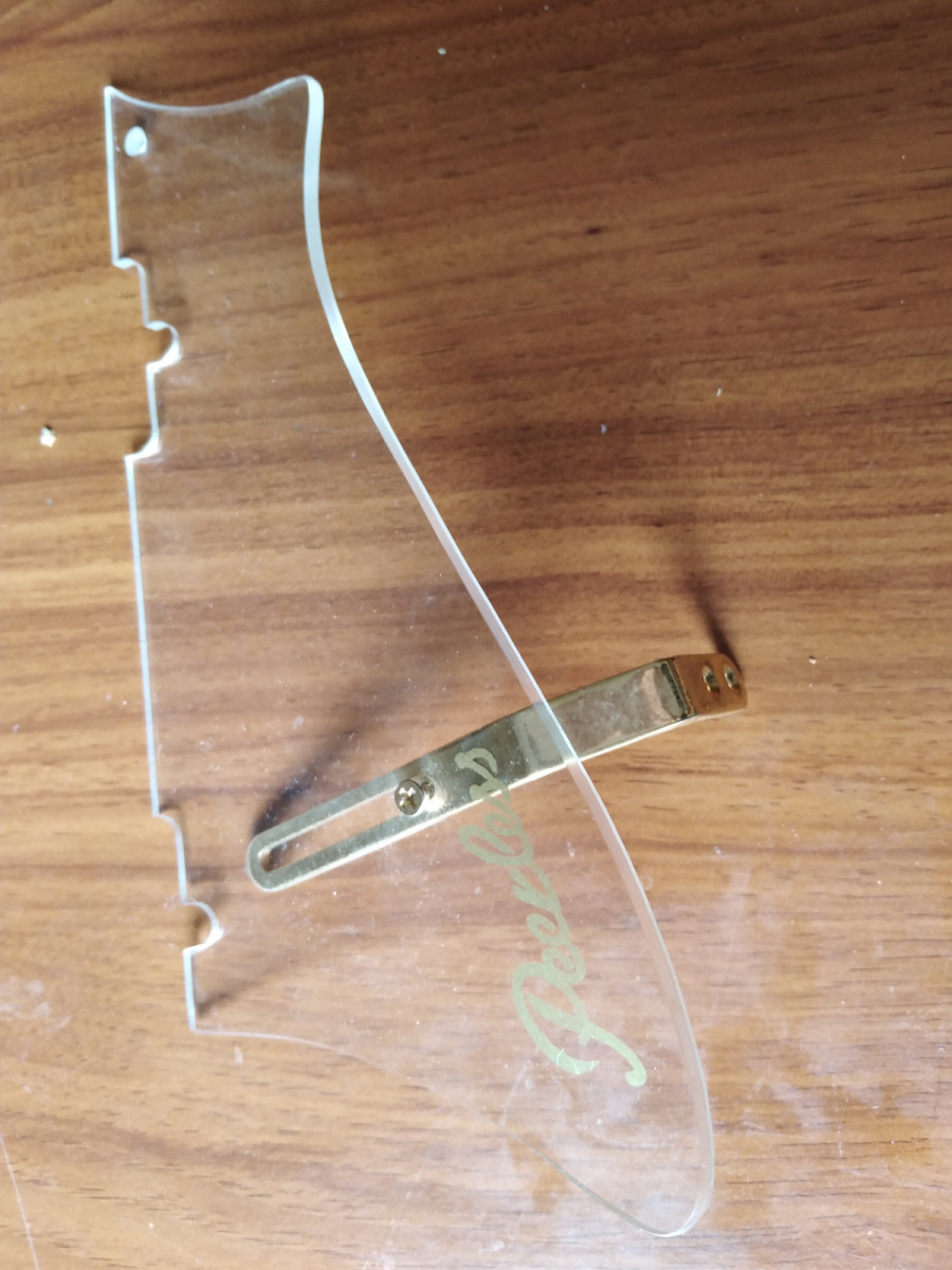 Golpeador transparente para guitarra de caja casi sin uso. Con soporte de sujeción y tornillos