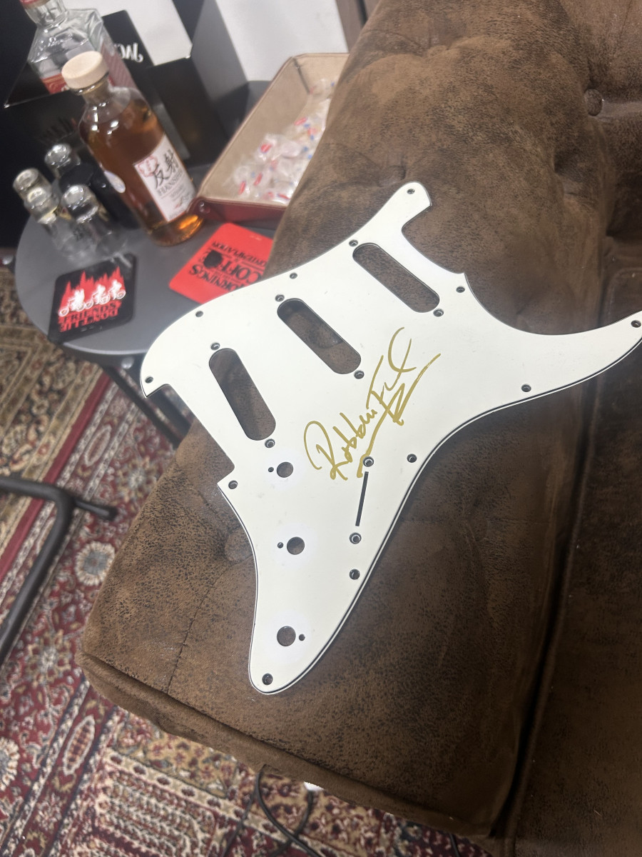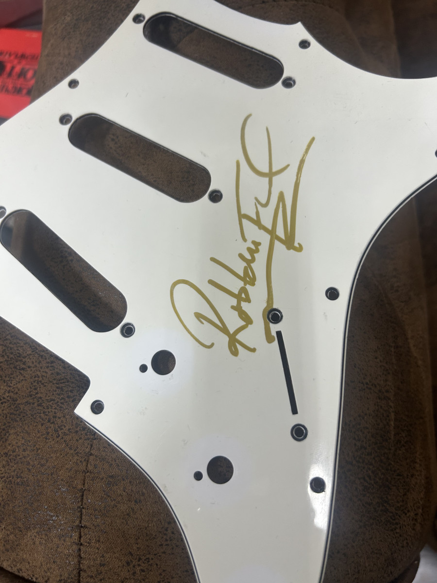 Pues tengo ya una guitarra y otro golpeador más firmado por Robben Ford y la idea es cambiar este por otro golpeador de algún artista no tenga y me cuadre para la colección de mi barbería 💈.