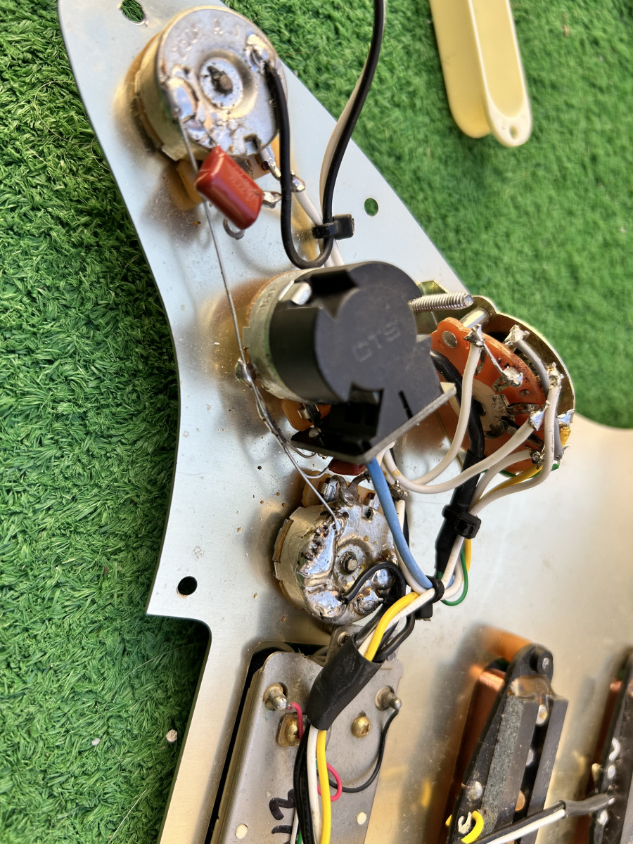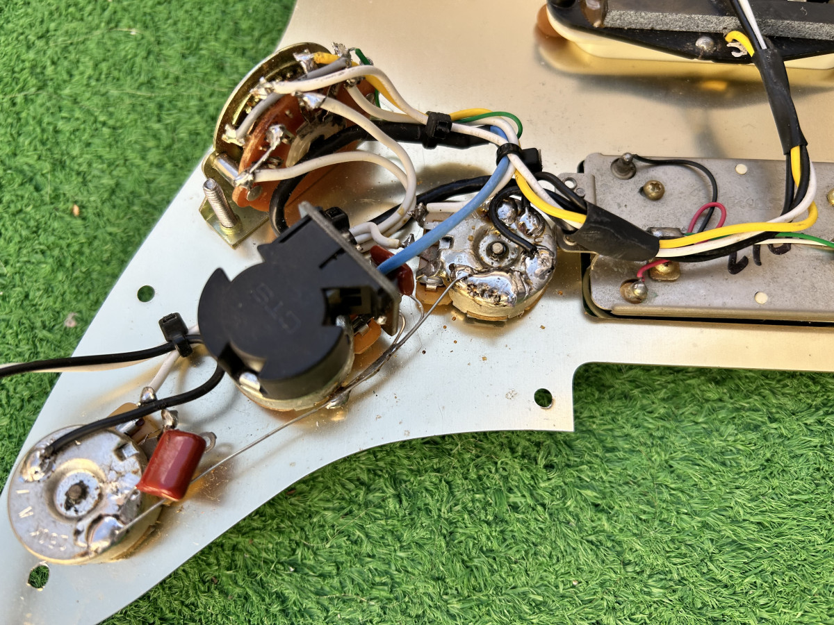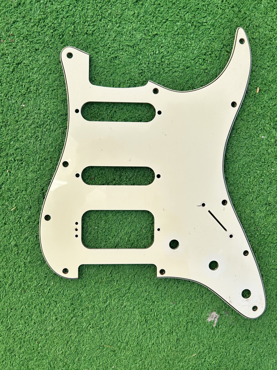 Golpeador stratocaster, formato HSS. Con pastilla humbucker Fender y pastillas single, creo que también son Fender. Con golpeador dorado anodizado, selector de 5 posiciones, sistema push-pull. Pickguard montado por luthier. Puedo añadir otro golpeador anodizado negro por 15€ más, o el crema por 8€ más.