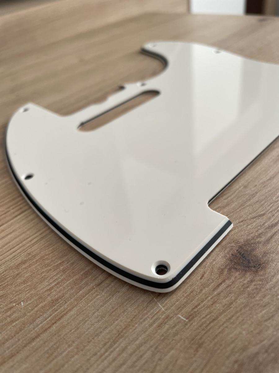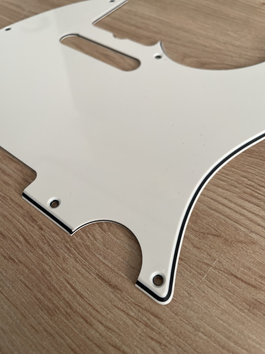 Golpeador premium estilo 60's para guitarra Telecaster de la marca Crazy Parts. Históricamente correcto, Wide Bevel. Fabricado en Japón. Sin estrenar, aún con el plástico protector. Color: Parchment.